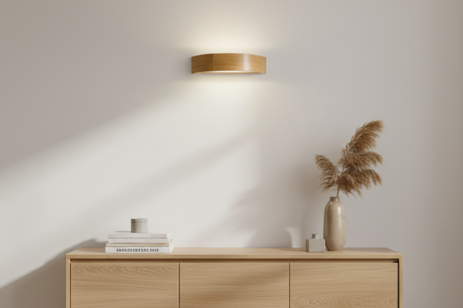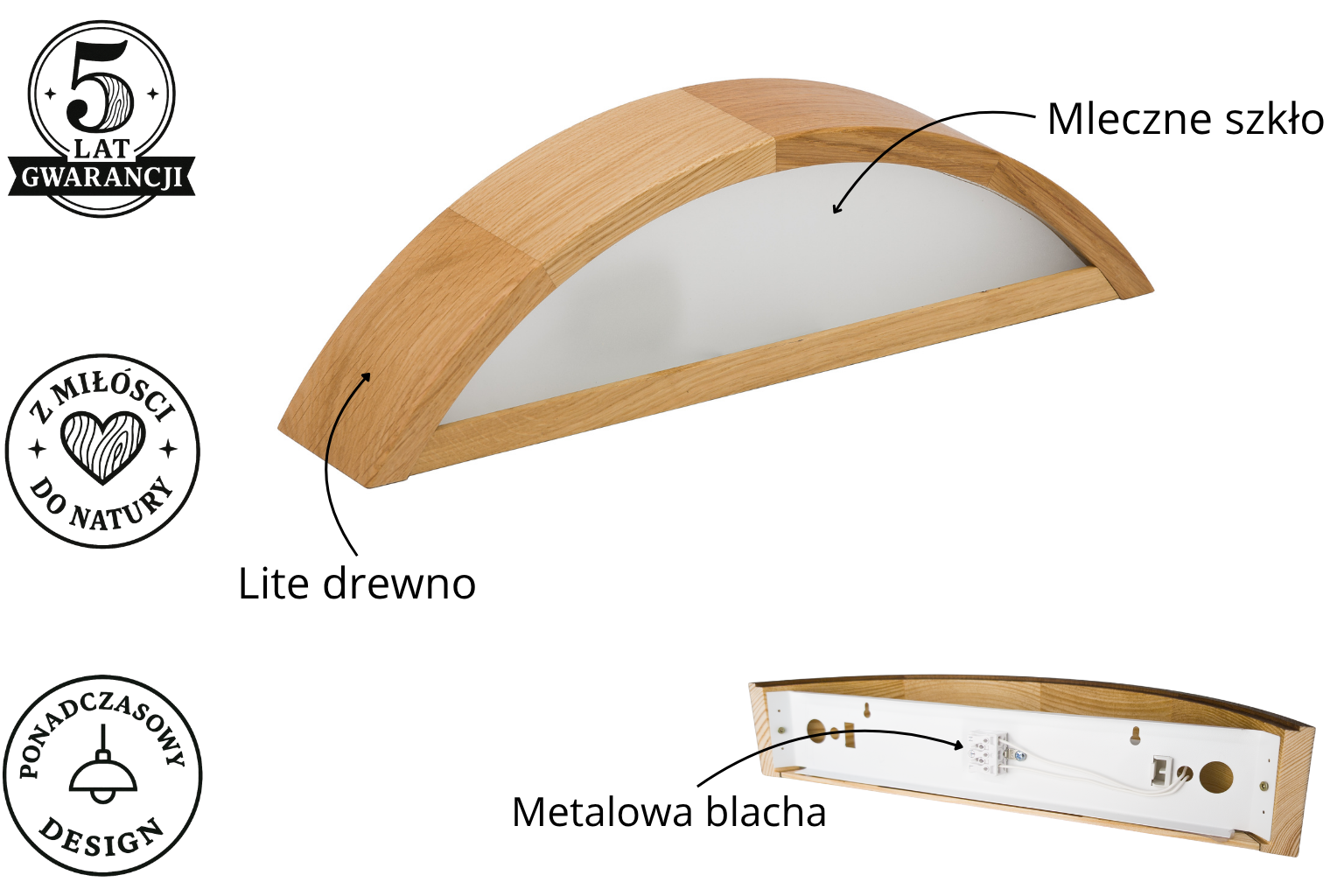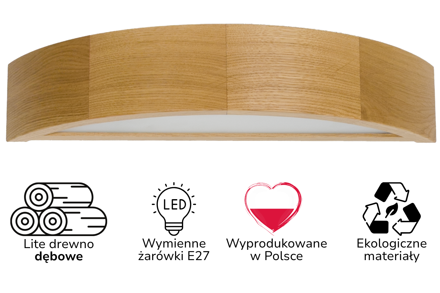 Kinkiet ścienny LEJA Półplafon drewno DĄB do salonu kuchni łazienki STYLOWA