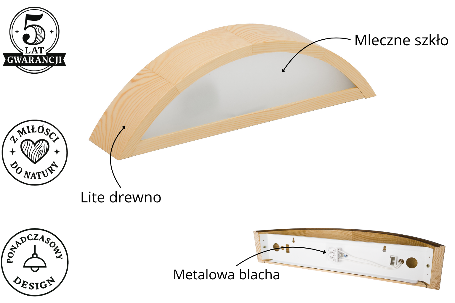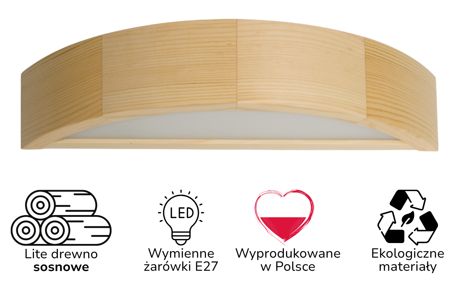 Kinkiet ścienny LEJA Półplafon SOSNA do salonu kuchni łazienki STYLOWA