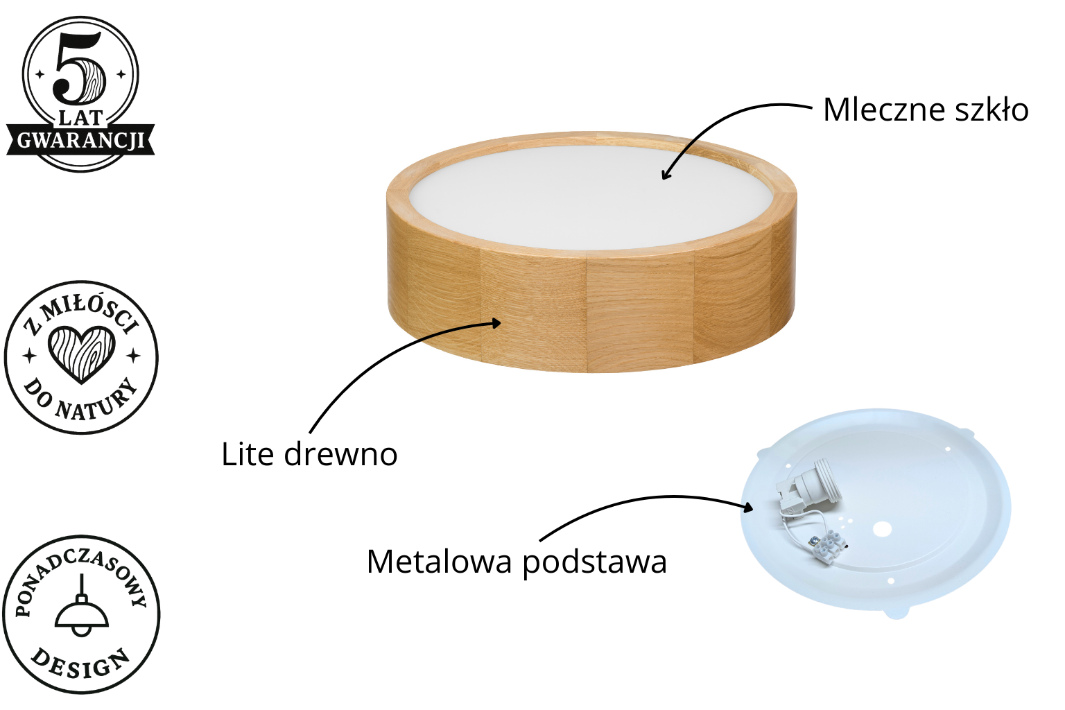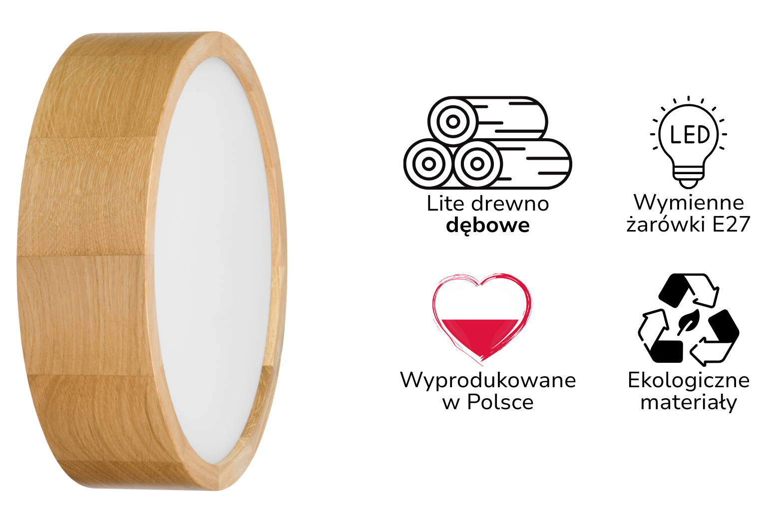 Lampa sufitowa drewniana LEJA Plafon ∅275 DĄB do salonu kuchni łazienki STYLOWA