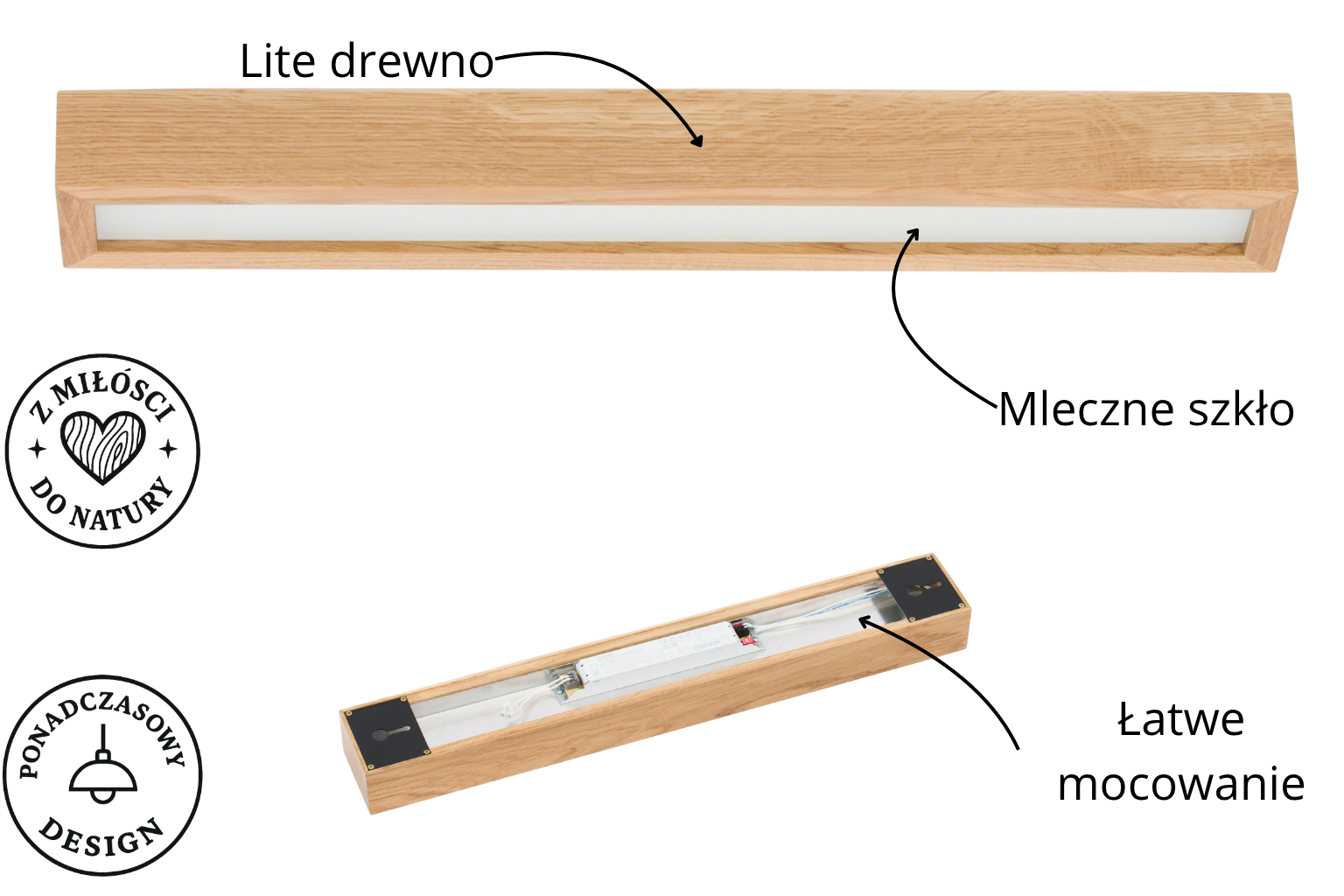 Lampa sufitowa LEJA LED listwa plafon drewno DĄB 60cm do salonu kuchni 4000K
