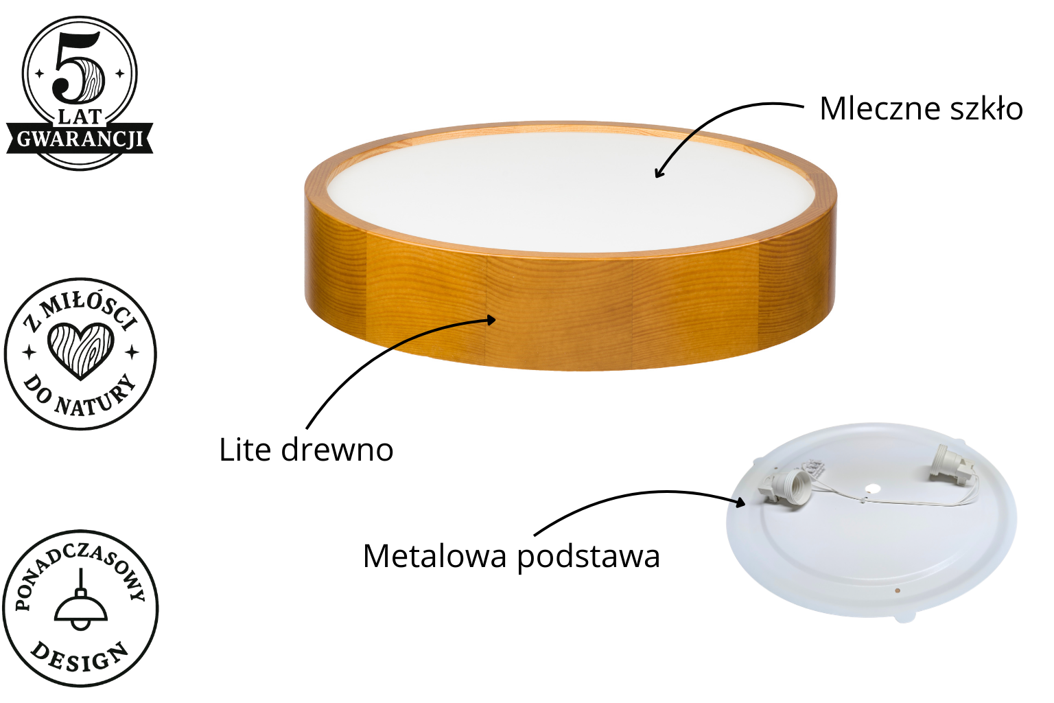 Lampa sufitowa LEJA Plafon 375 ZŁOTY DĄB do salonu kuchni łazienki STYLOWA