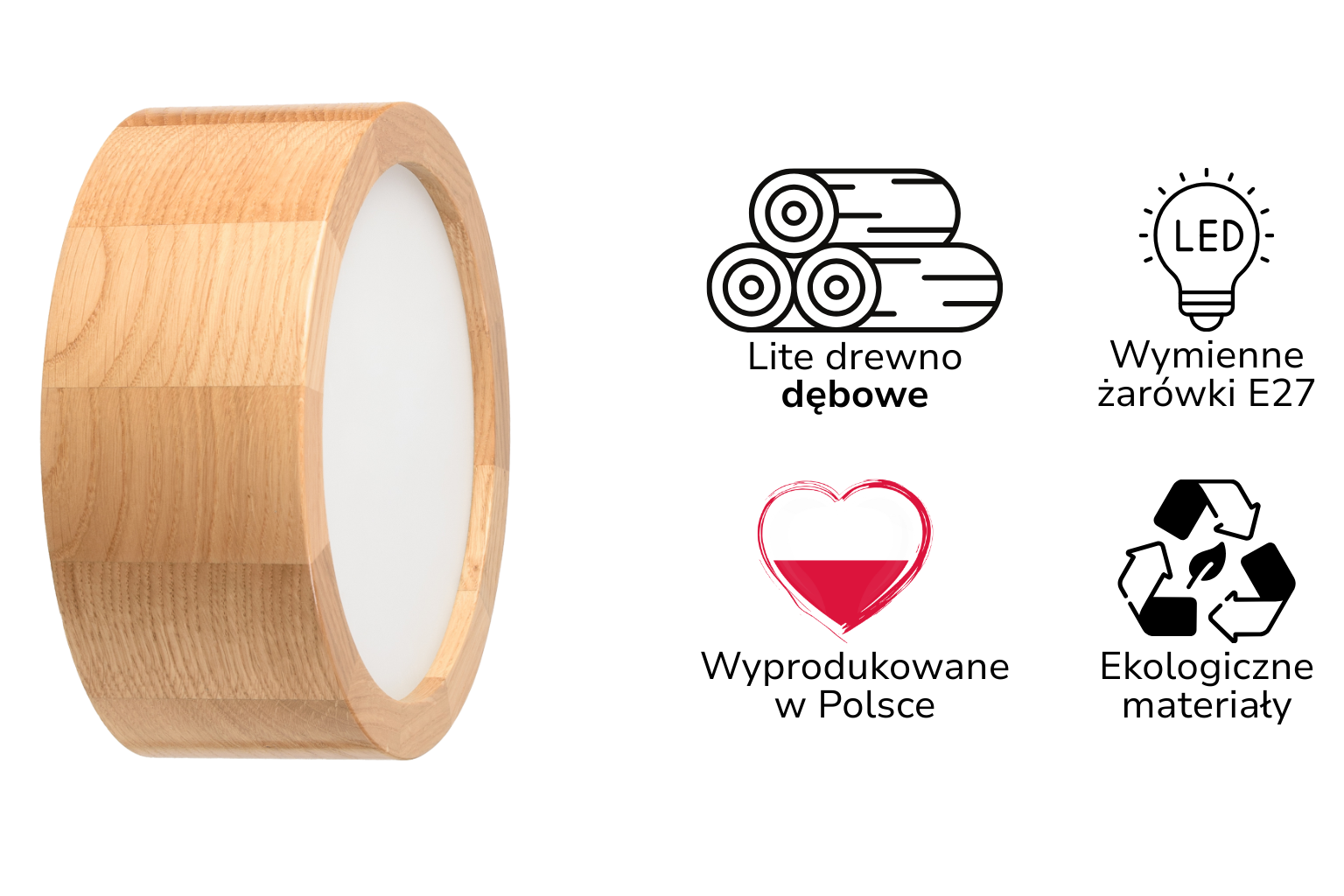 Wybierz lampę z litego drewna dębowego, z wymiennymi żarówkami E27, która będzie Ci służyć przez lata