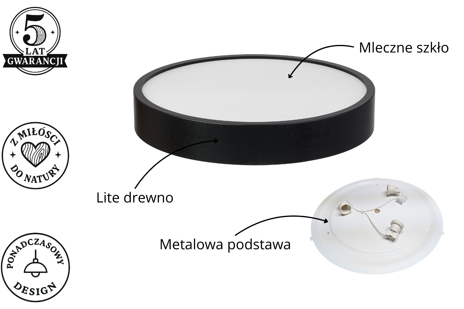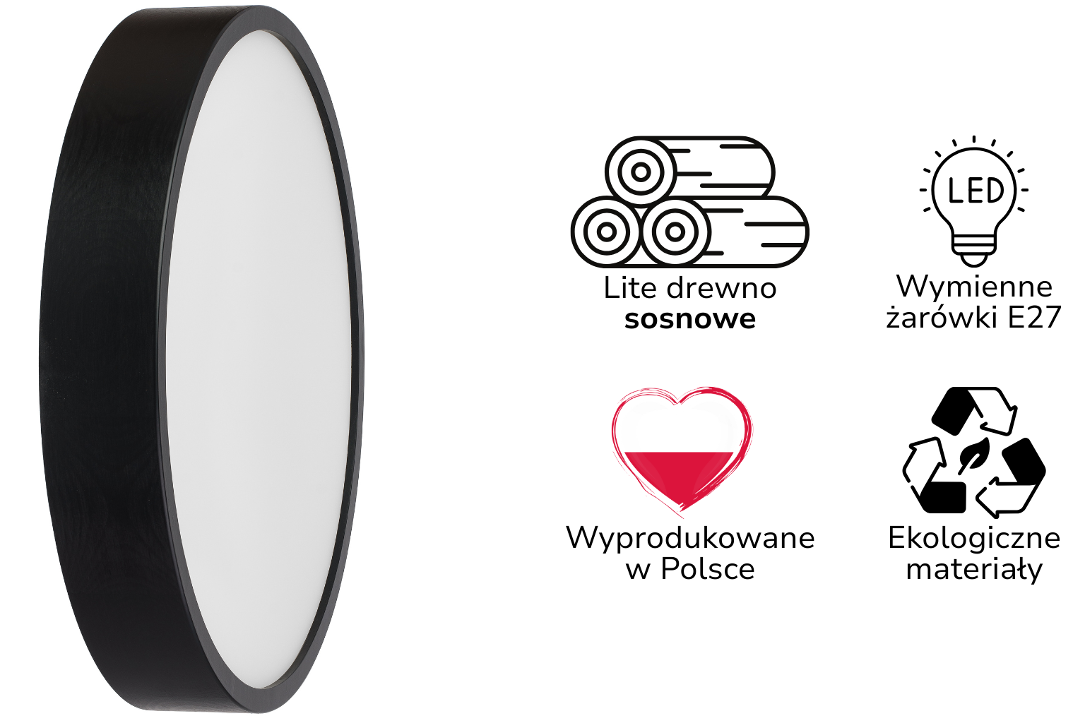 Lampa sufitowa LEJA Plafon ∅475 CZARNY do salonu kuchni łazienki STYLOWA