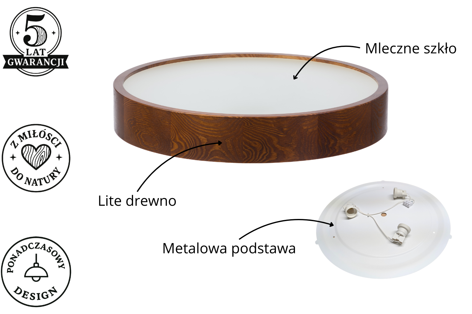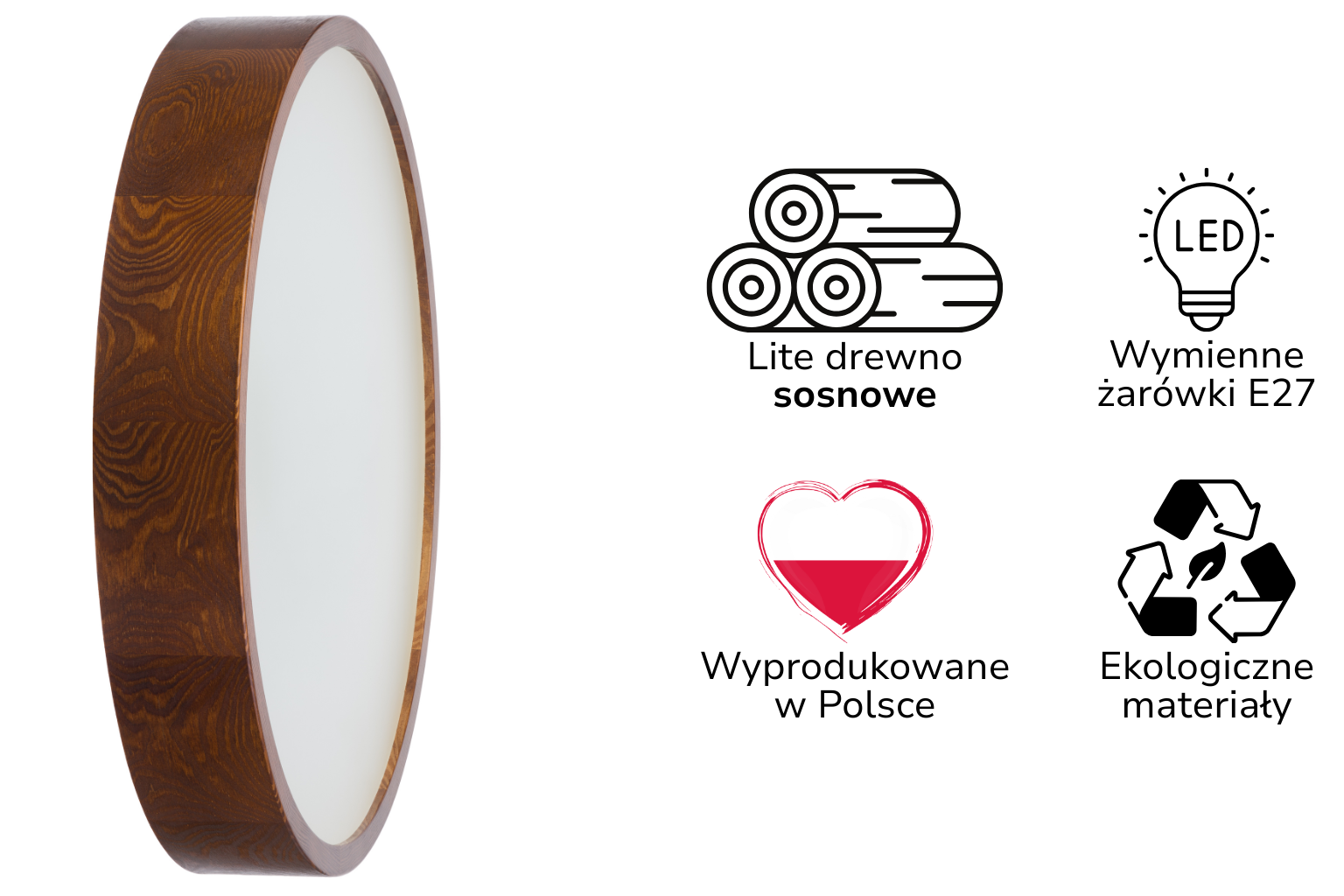 Lampa sufitowa LEJA Plafon ∅475 ORZECH do salonu kuchni łazienki STYLOWA