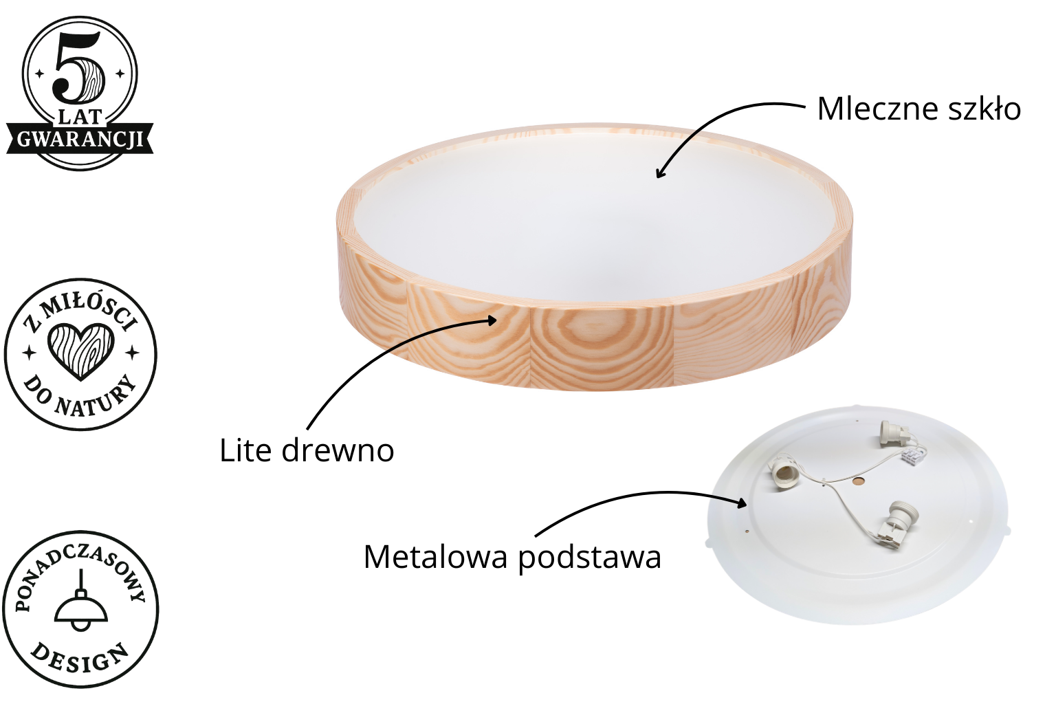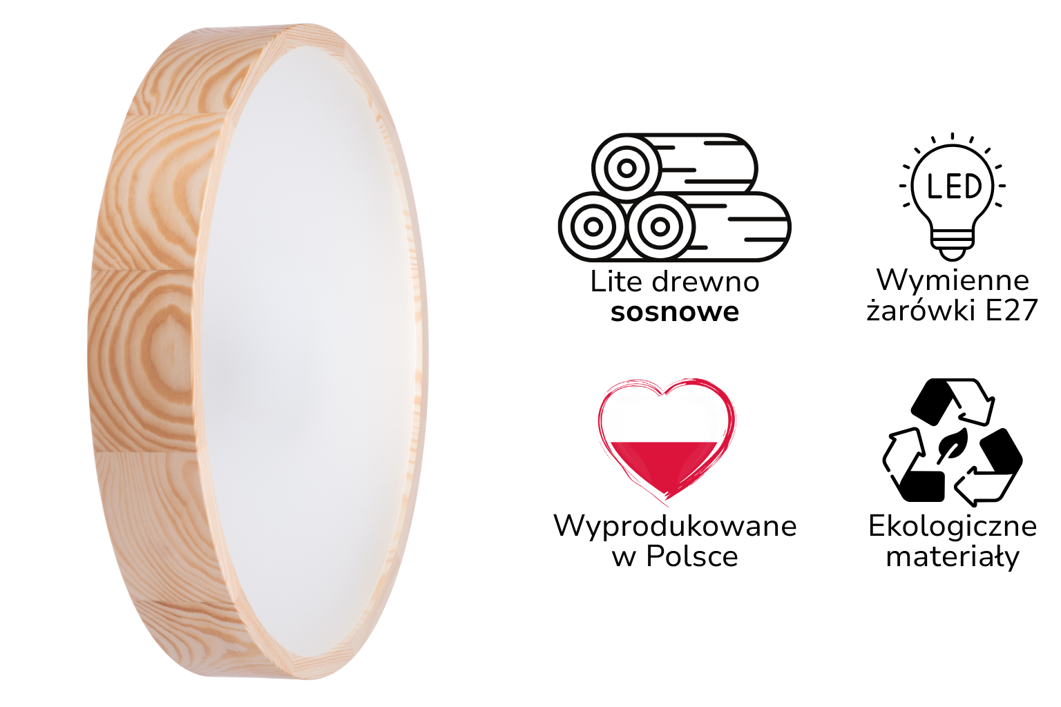 Lampa sufitowa LEJA Plafon ∅475 SOSNA do salonu kuchni łazienki STYLOWA