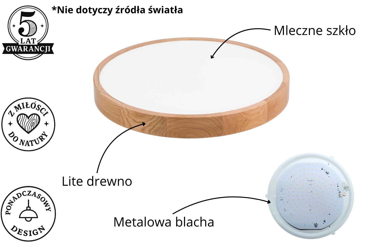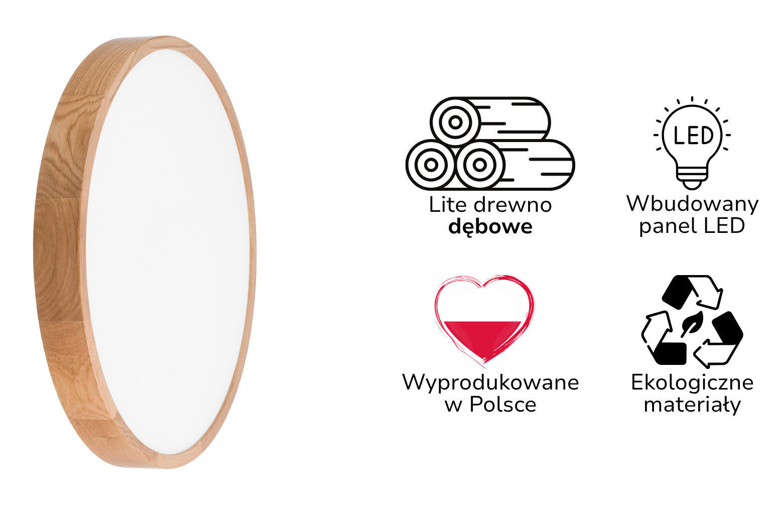 Lampa sufitowa LEJA Plafon LED ∅475 DĄB do salonu kuchni 4000K STYLOWA