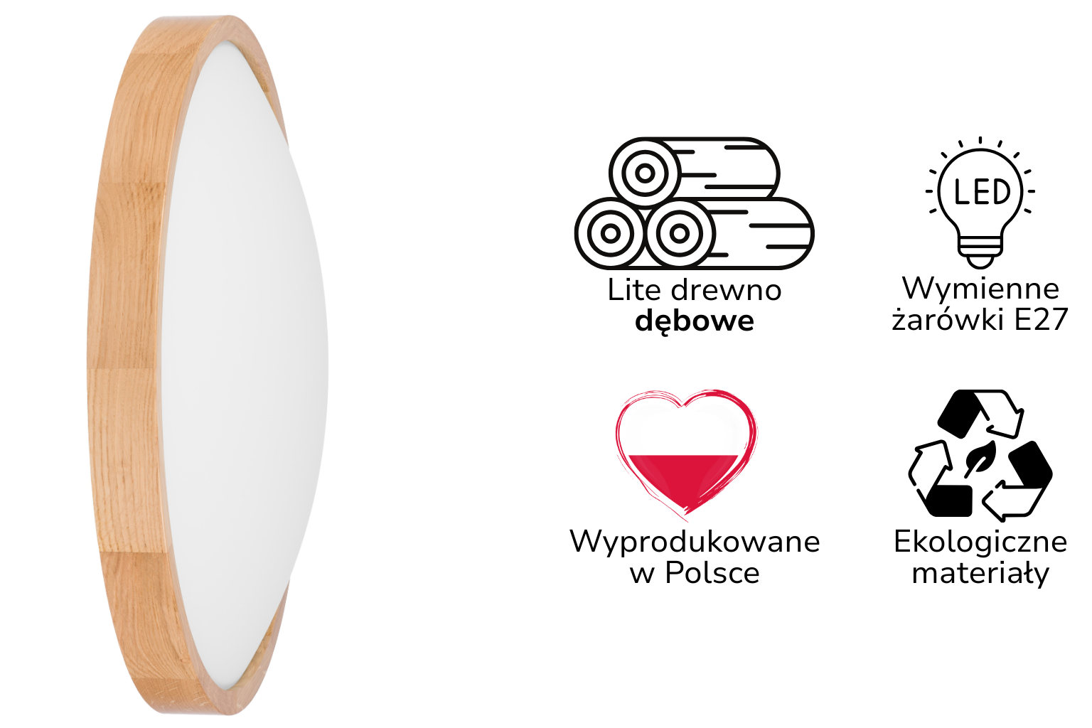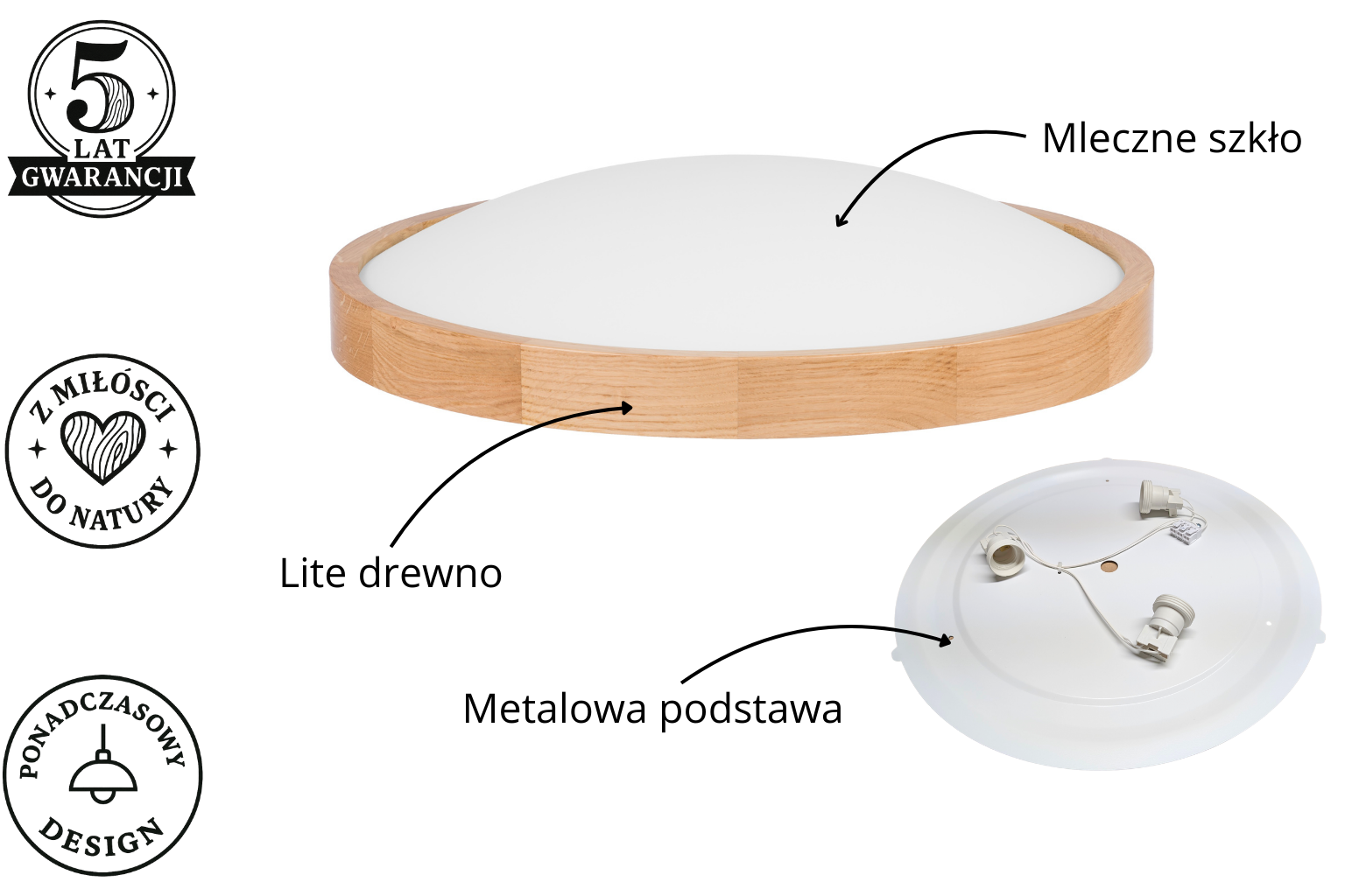 Lampa sufitowa ORION Plafon ∅475 DĄB do salonu kuchni łazienki STYLOWA
