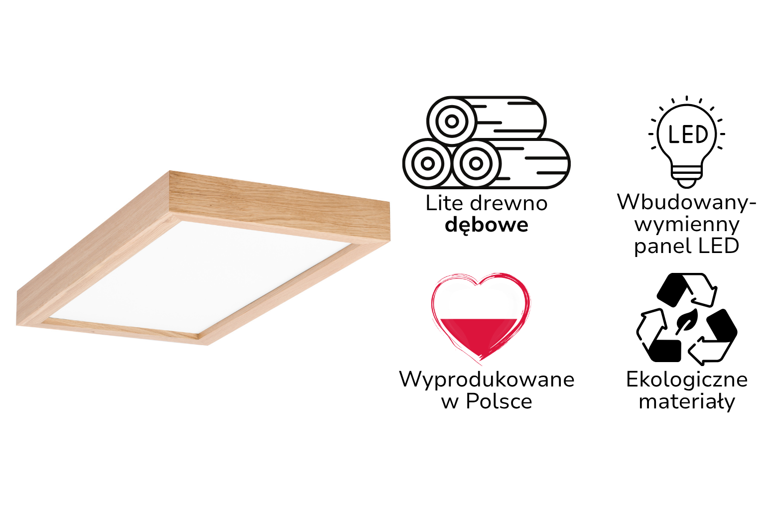 Lampa sufitowa Plafon LED LEJA 60×30 DĄB 28W do korytarza, pokoju STYLOWA