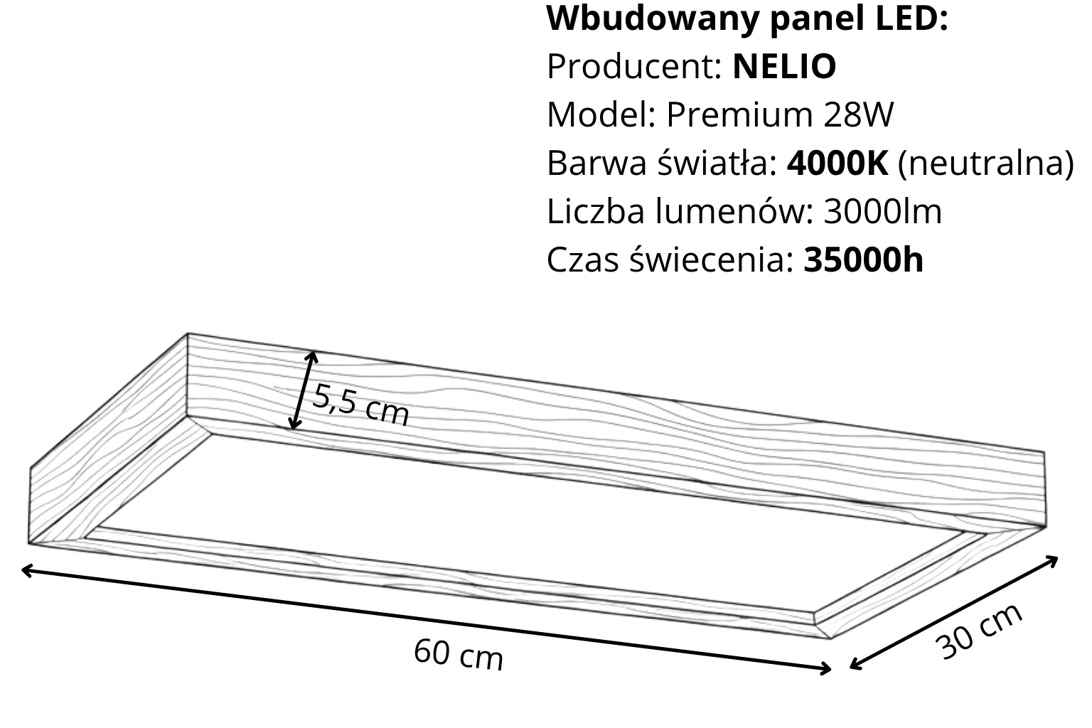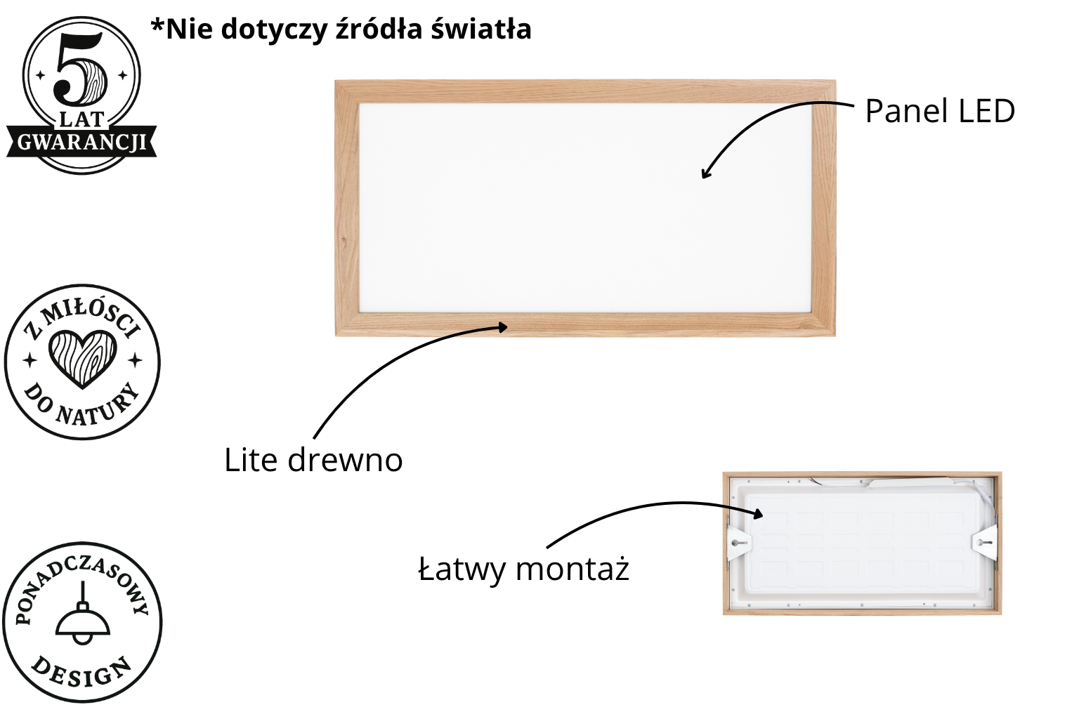 Napisz pierwszą opinię o „Lampa sufitowa Plafon LED LEJA 60×30 DĄB 28W do korytarza, pokoju STYLOWA”