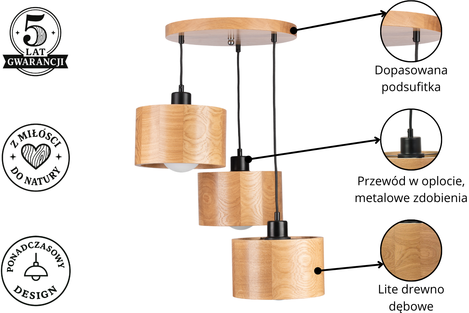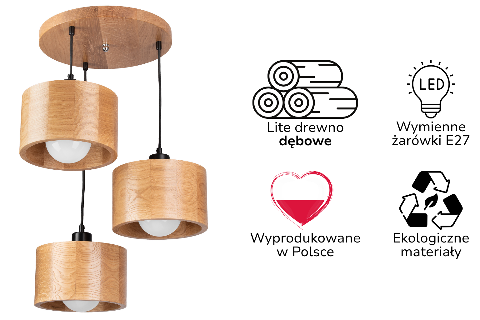 Wybierz lampę z litego drewna dębowego, z wymiennymi żarówkami E27, która będzie Ci służyć przez lata