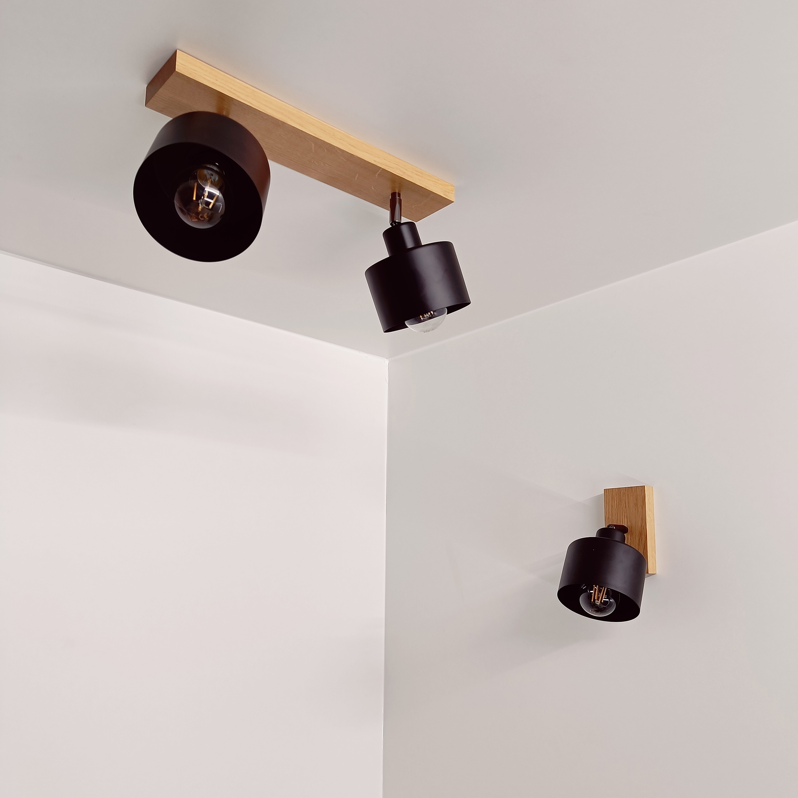 Podsufitka jest wykonana z drewna dębowego, który materiałem jest ponadczasowym i pasującym do każdego rodzaju mebli. Nadaje ona lampie sznyt, to nieuchwytne COŚ, czego brakuje w tanich podróbkach, wykonanych na dalekim wschodzie. Metalowe, solidne klosze stylowo dopełniają i wykańczają to cudowne połączenie ❤️