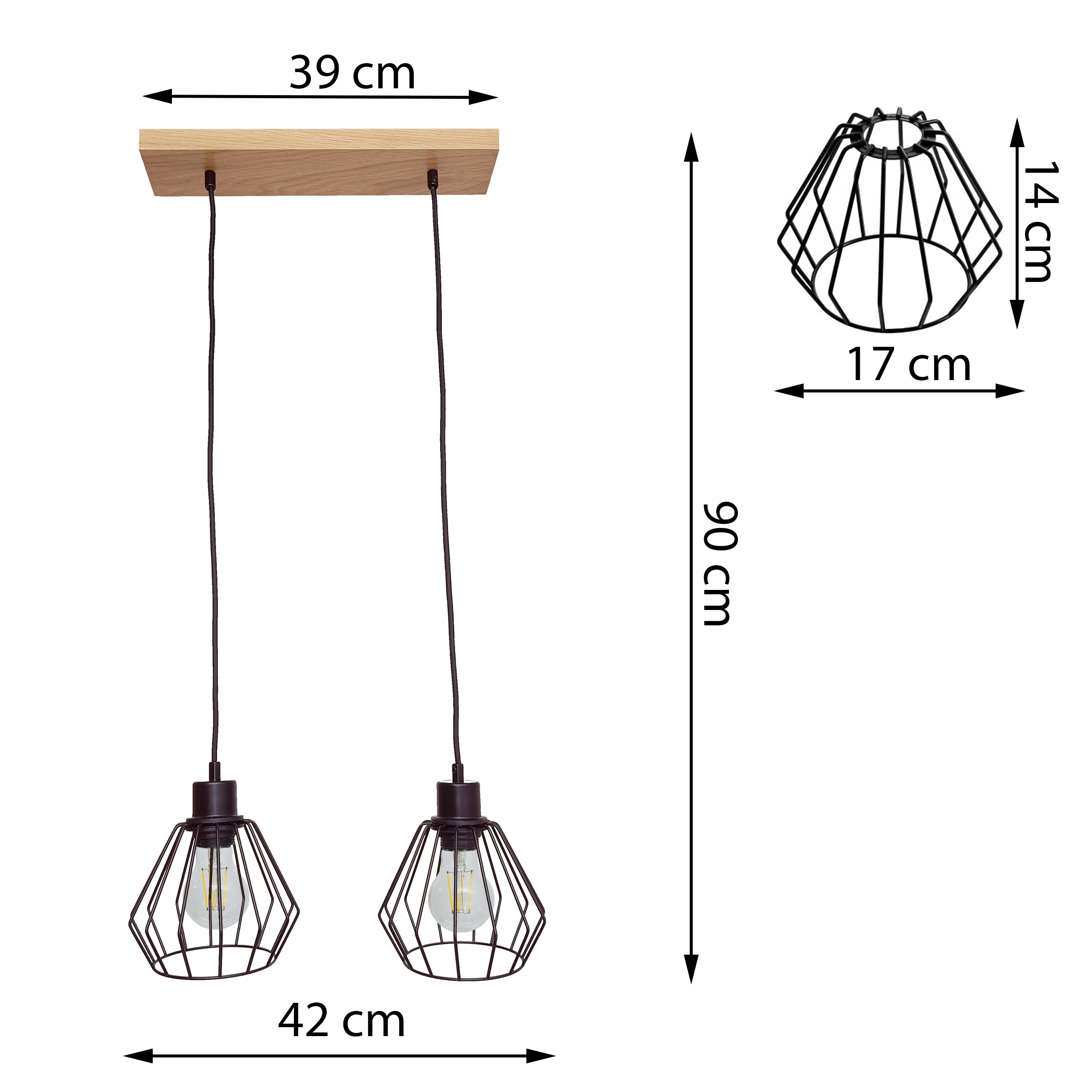 Lampa sufitowa wisząca DIANA żyrandol loft drewniana DĄB 2x diament STYLOWA