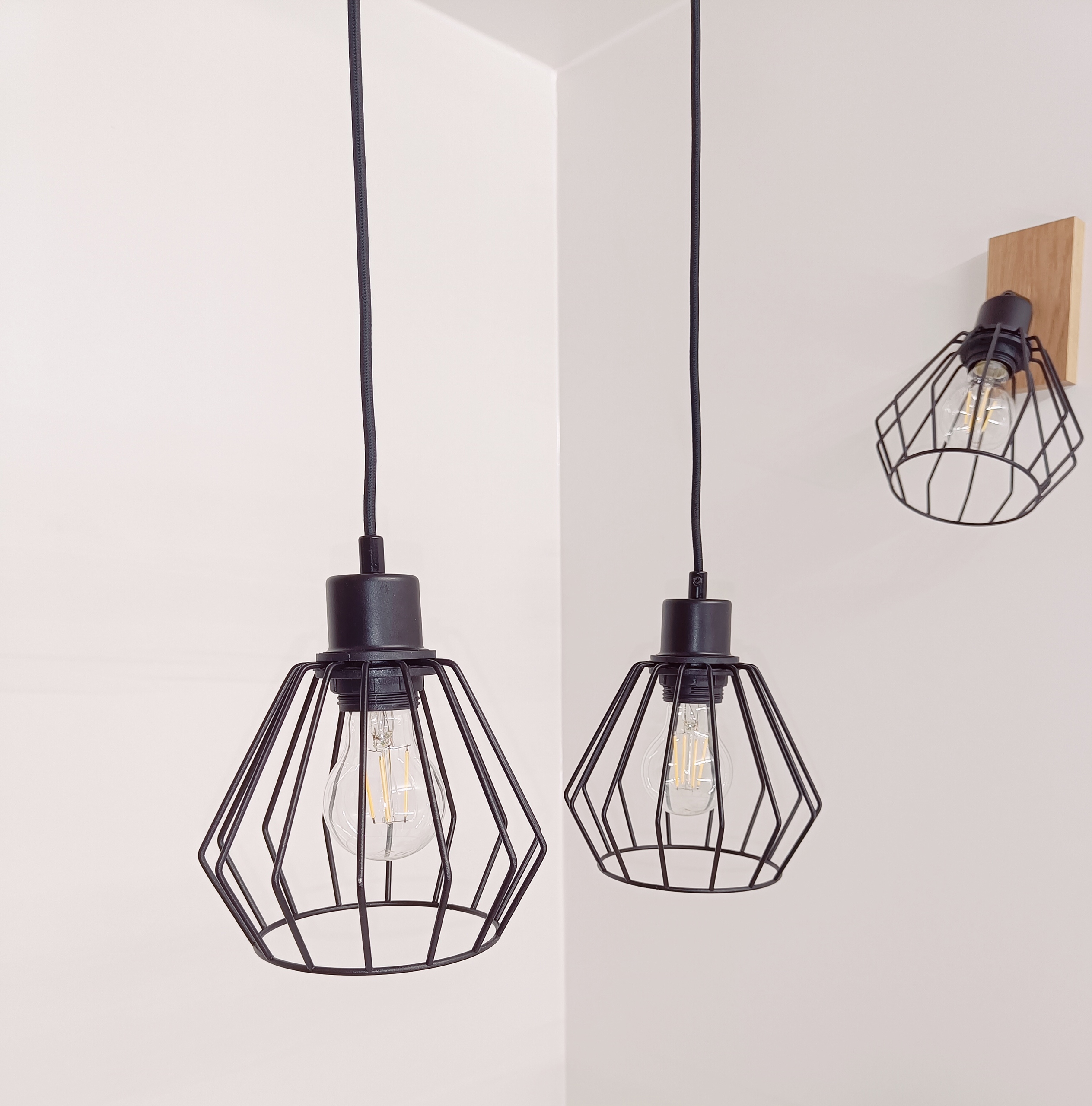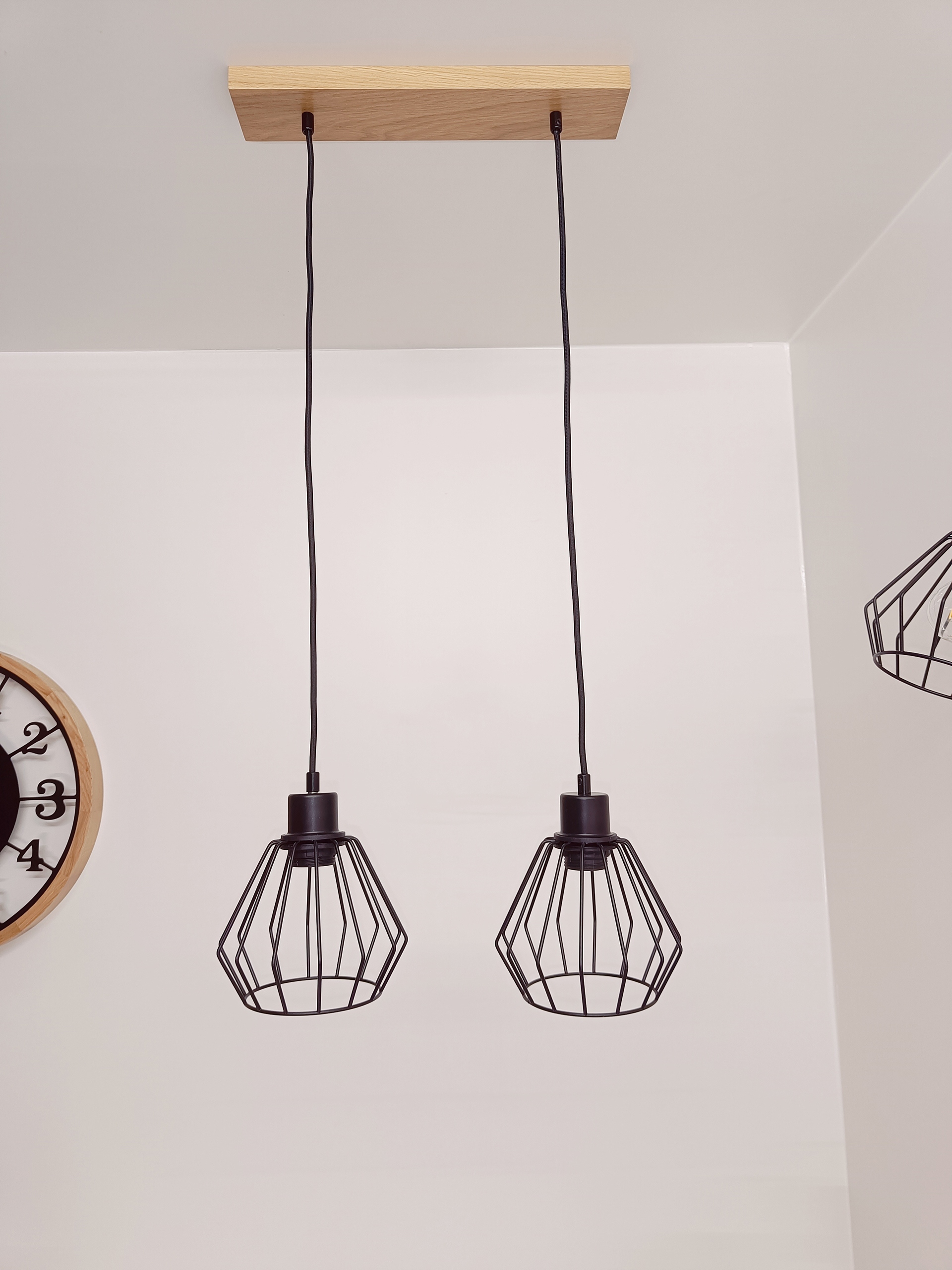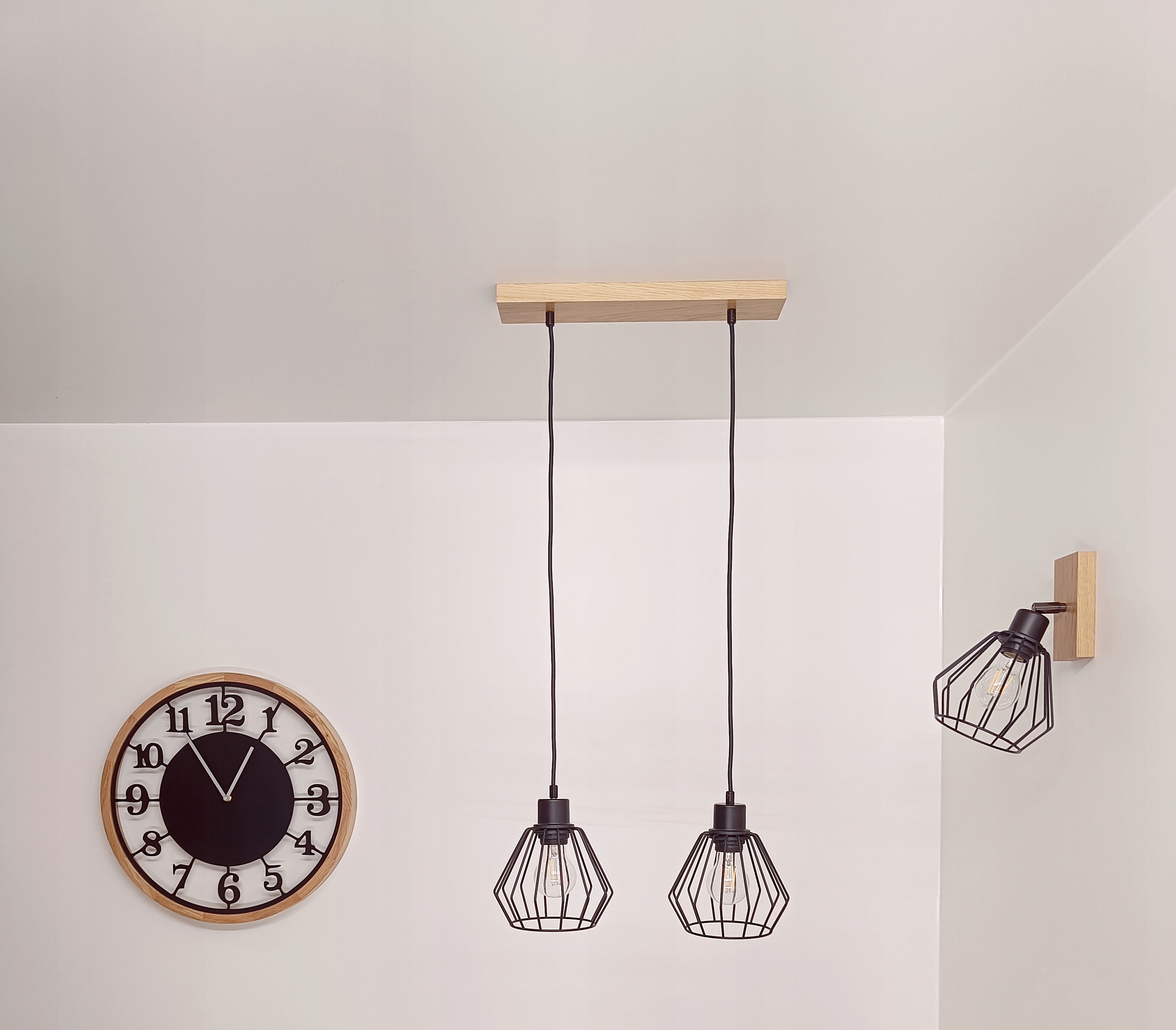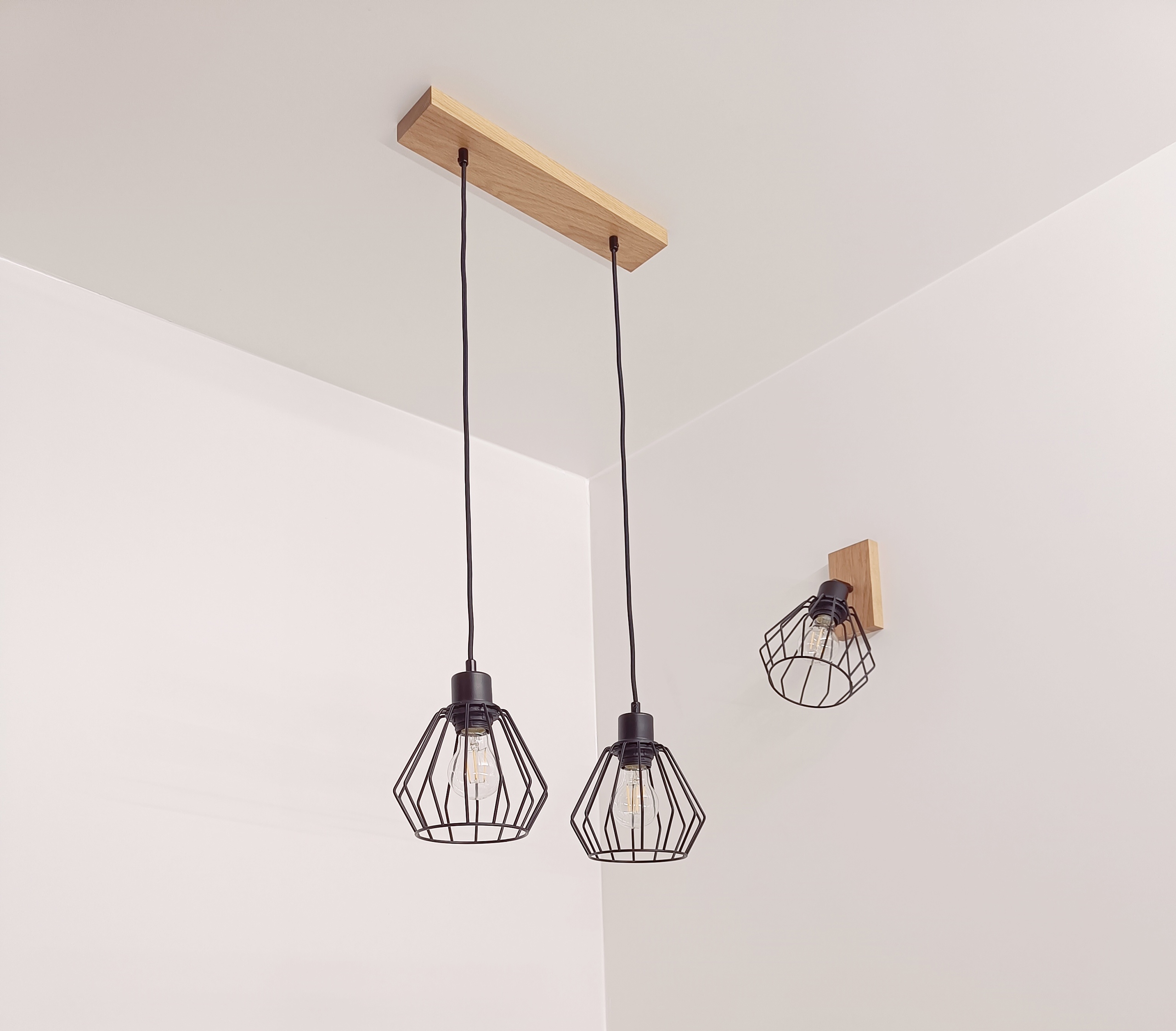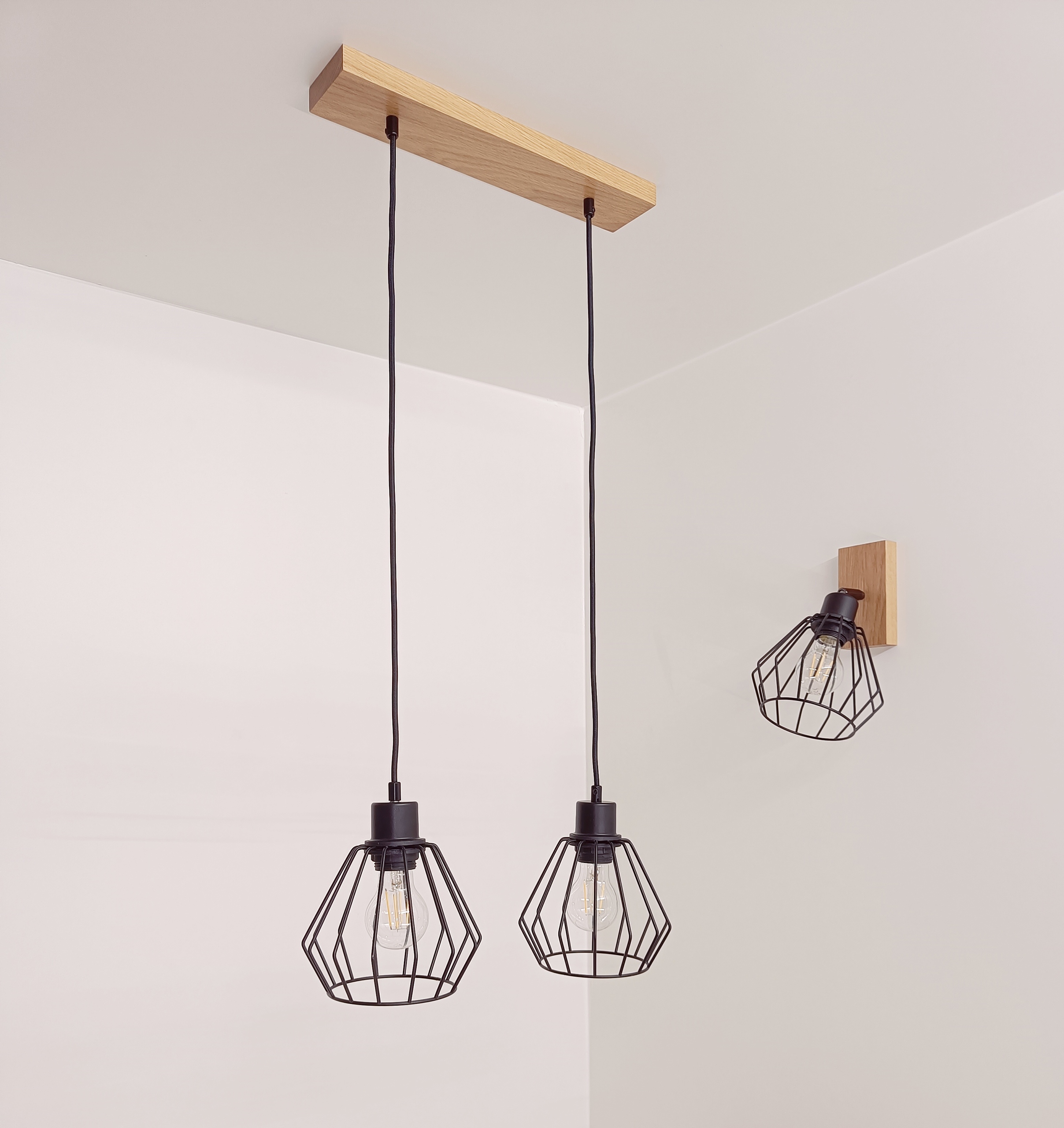 Podsufitka jest wykonana z drewna dębowego, który materiałem jest ponadczasowym i pasującym do każdego rodzaju mebli. Nadaje ona lampie sznyt, to nieuchwytne COŚ, czego brakuje w tanich podróbkach, wykonanych na dalekim wschodzie. Druciane, solidne klosze stylowo dopełniają i wykańczają to cudowne połączenie ❤️