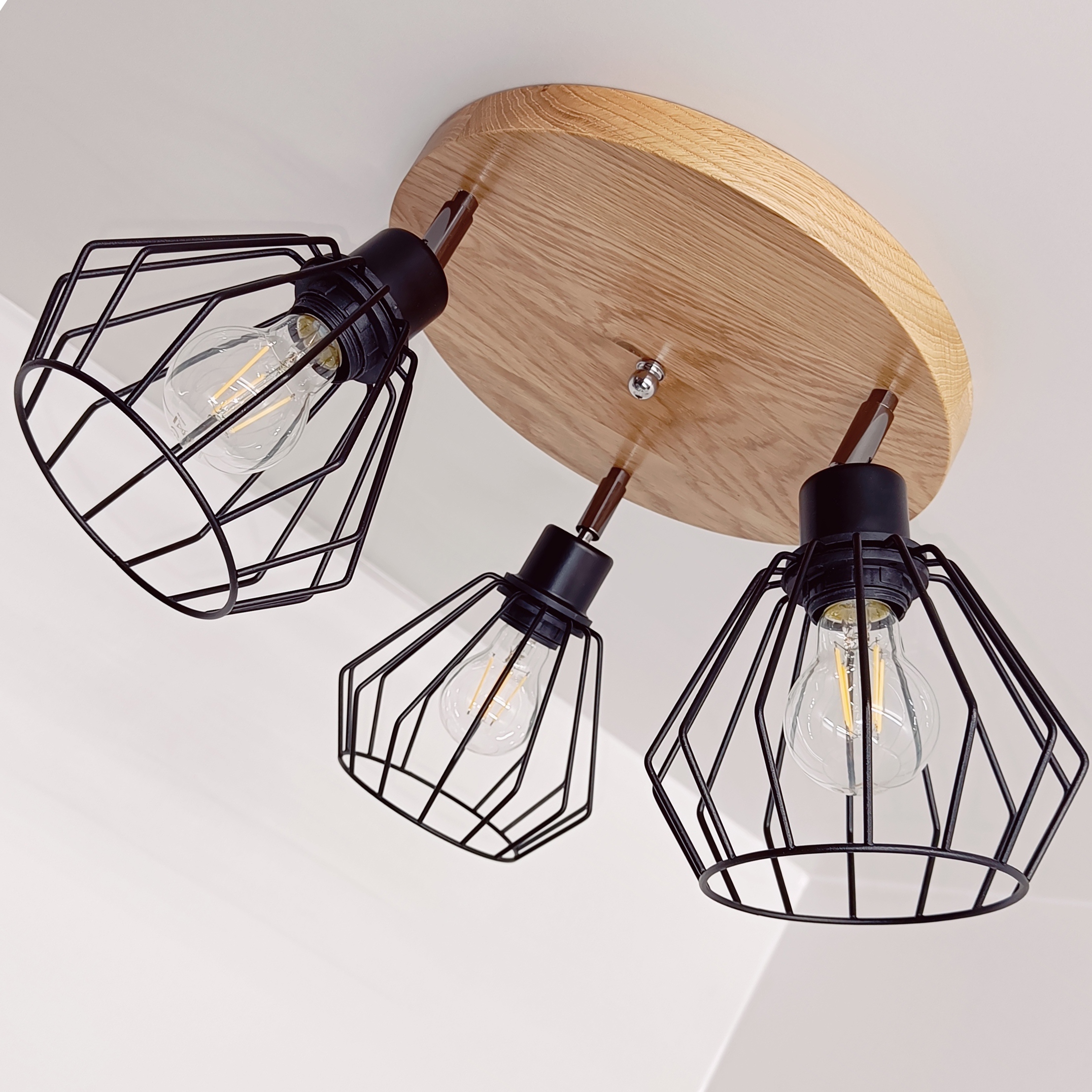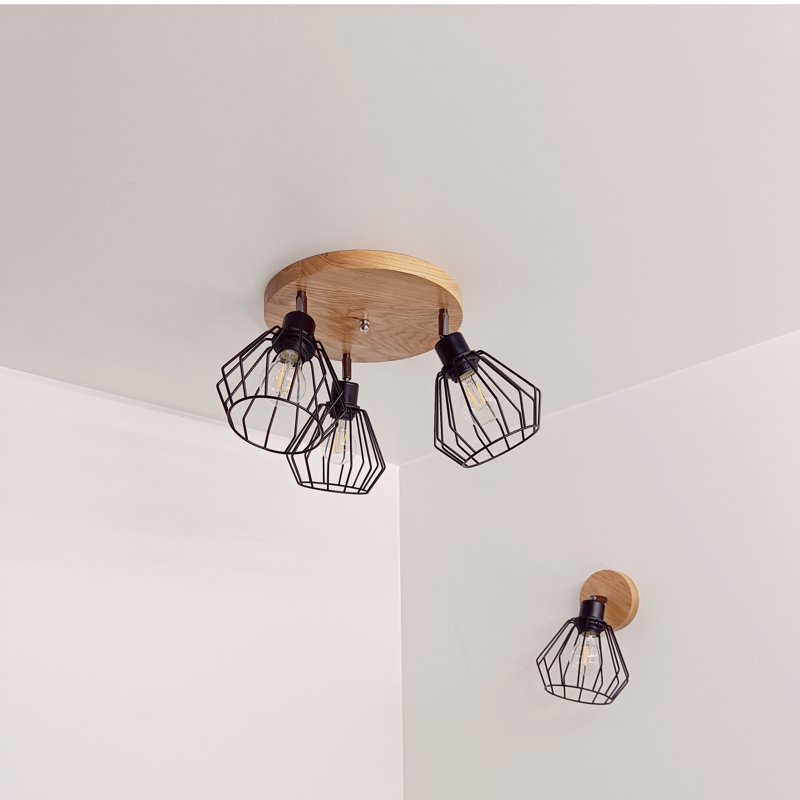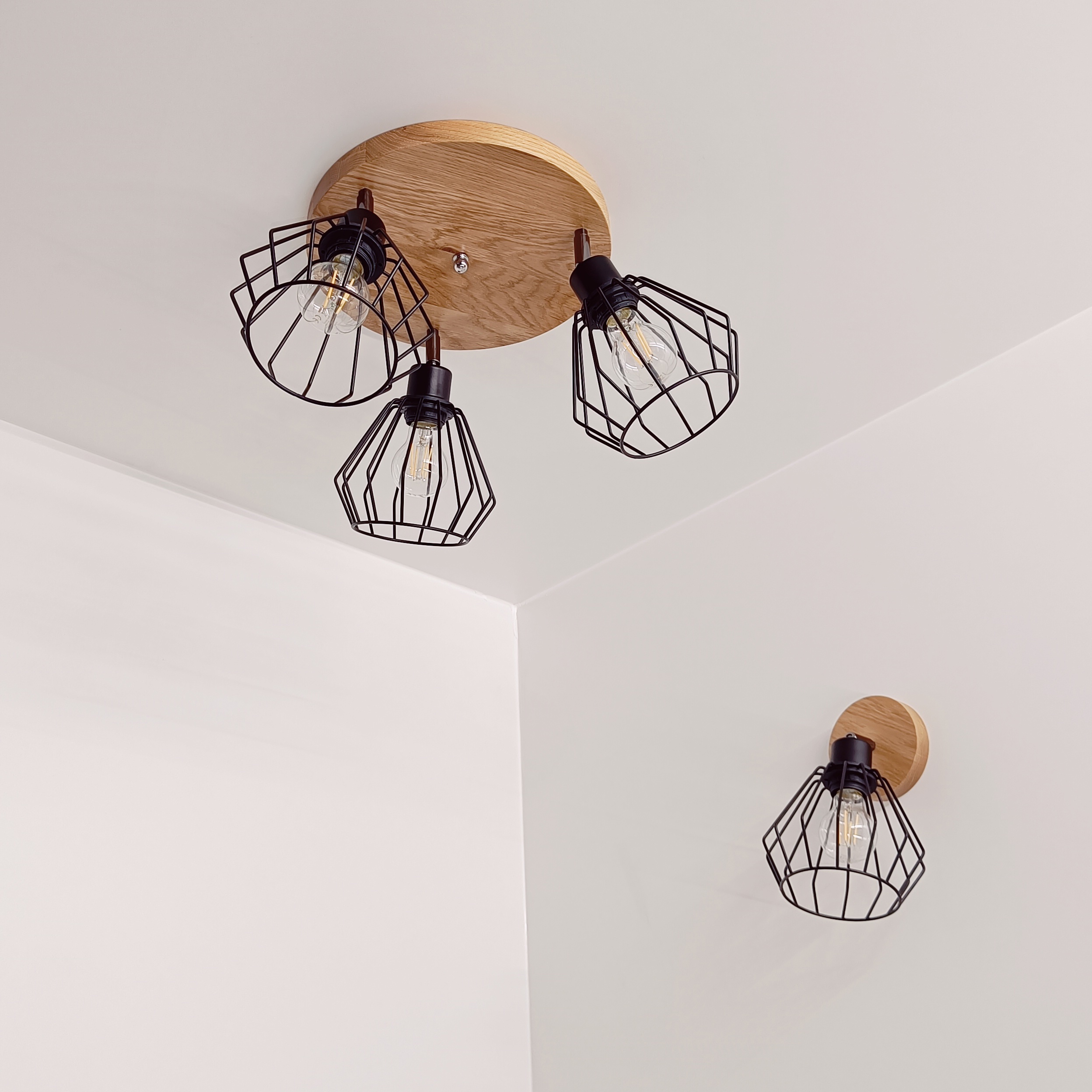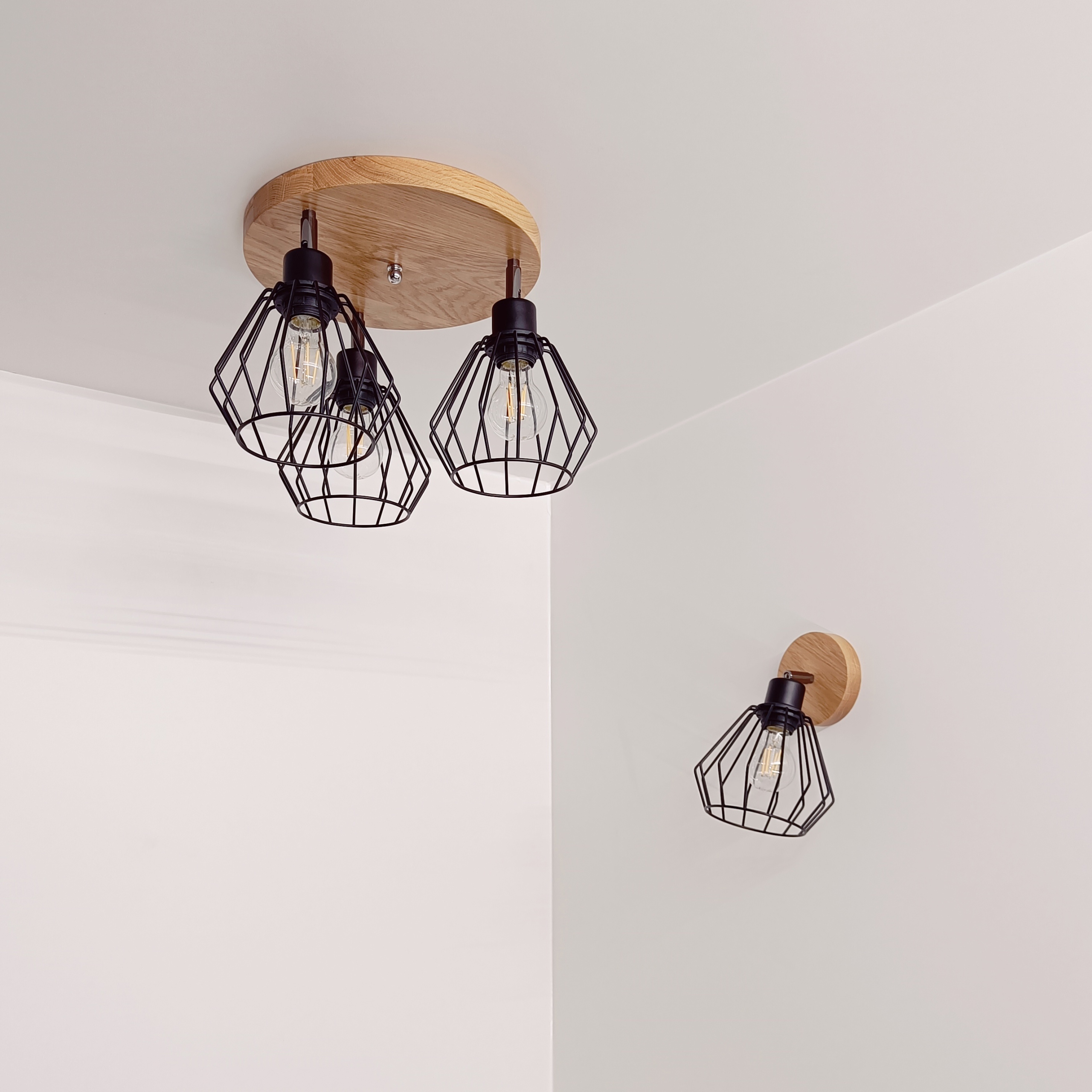 Podsufitka jest wykonana z drewna dębowego, który materiałem jest ponadczasowym i pasującym do każdego rodzaju mebli. Nadaje ona lampie sznyt, to nieuchwytne COŚ, czego brakuje w tanich podróbkach, wykonanych na dalekim wschodzie. Druciane, solidne klosze stylowo dopełniają i wykańczają to cudowne połączenie ❤️