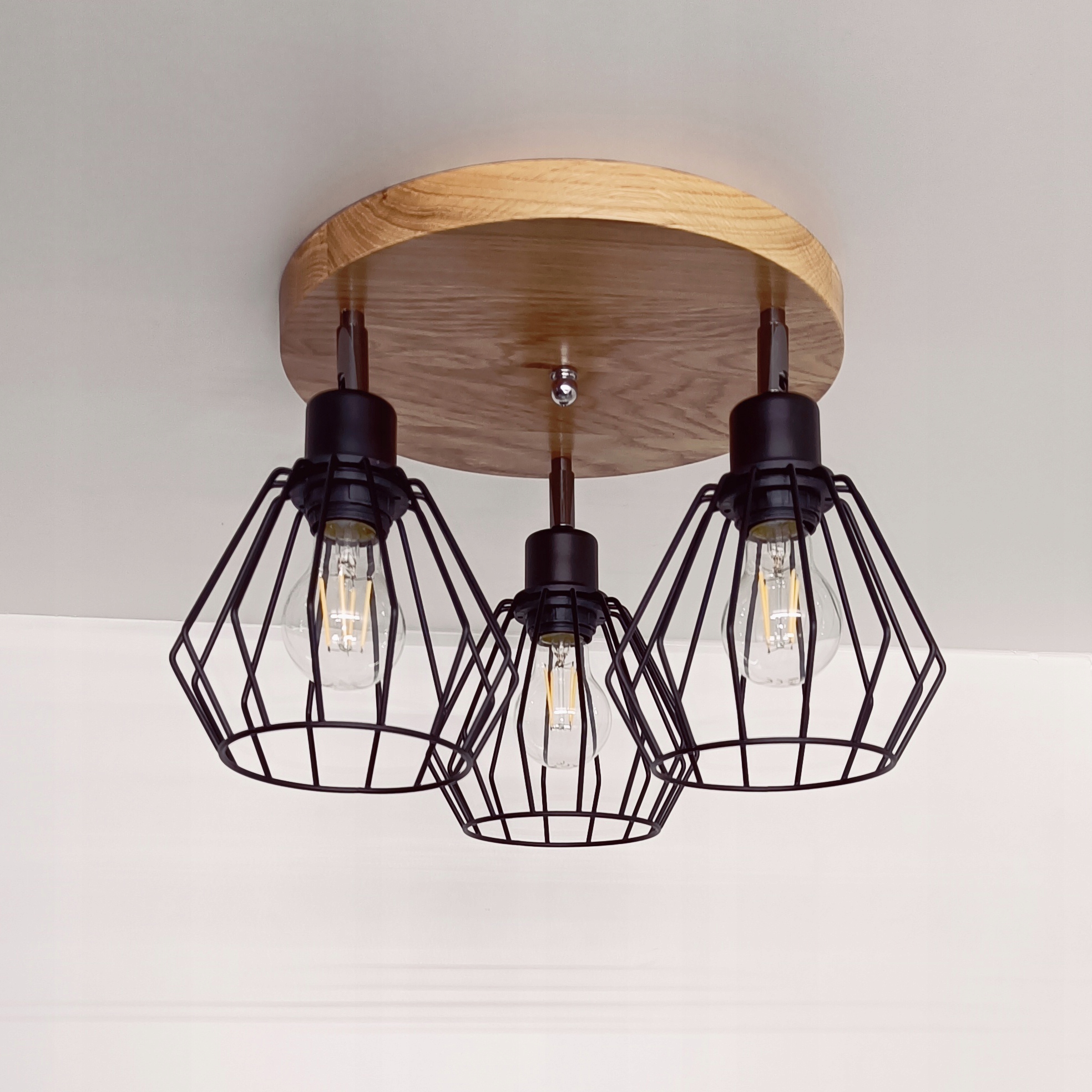 Lampa sufitowa wisząca DIANA żyrandol loft drewniana DĄB 3x diament STYLOWA