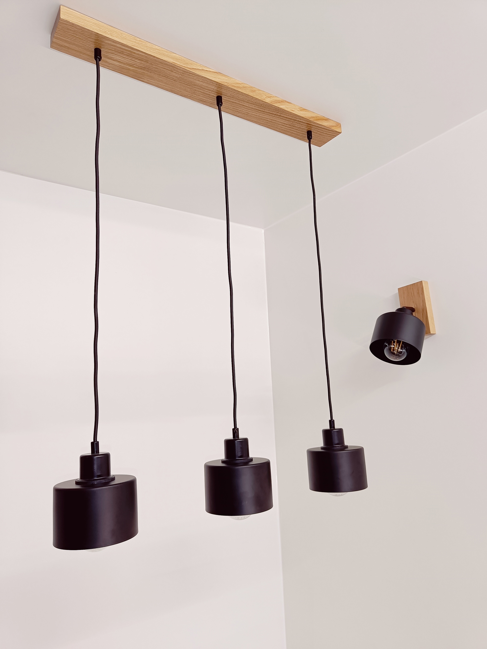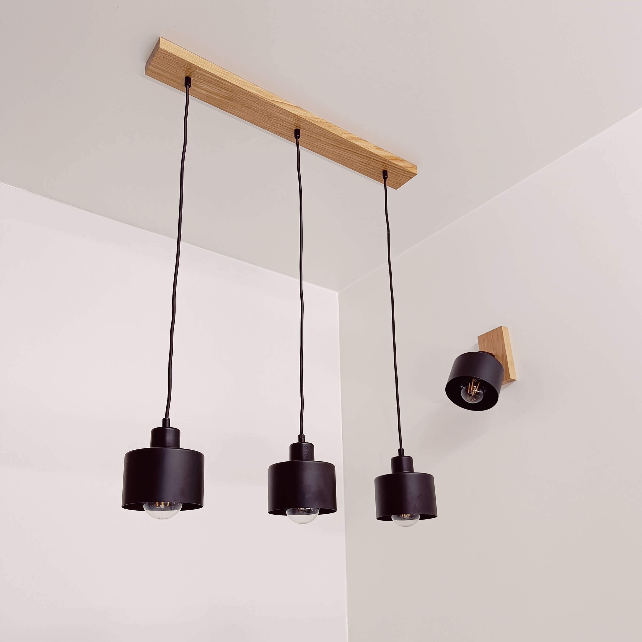 Podsufitka jest wykonana z drewna dębowego, który materiałem jest ponadczasowym i pasującym do każdego rodzaju mebli. Nadaje ona lampie sznyt, to nieuchwytne COŚ, czego brakuje w tanich podróbkach, wykonanych na dalekim wschodzie. Metalowe, solidne klosze stylowo dopełniają i wykańczają to cudowne połączenie ❤️