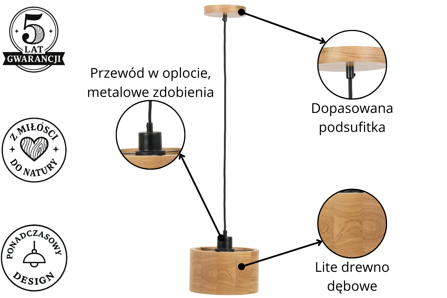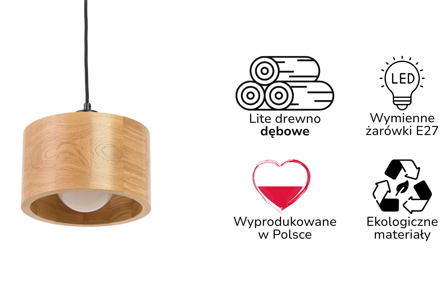 Wybierz lampę z litego drewna dębowego, z wymiennymi żarówkami E27, która będzie Ci służyć przez lata