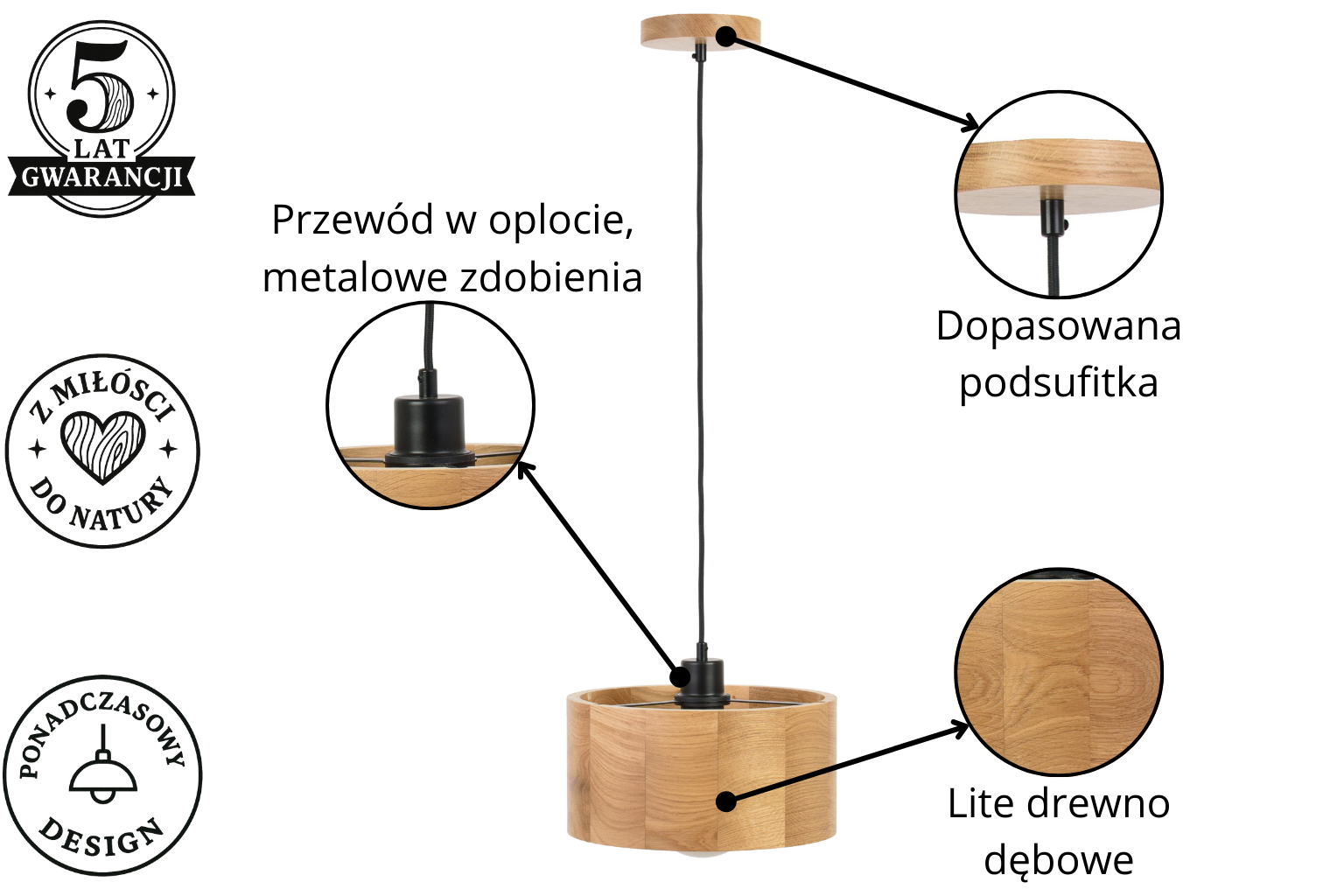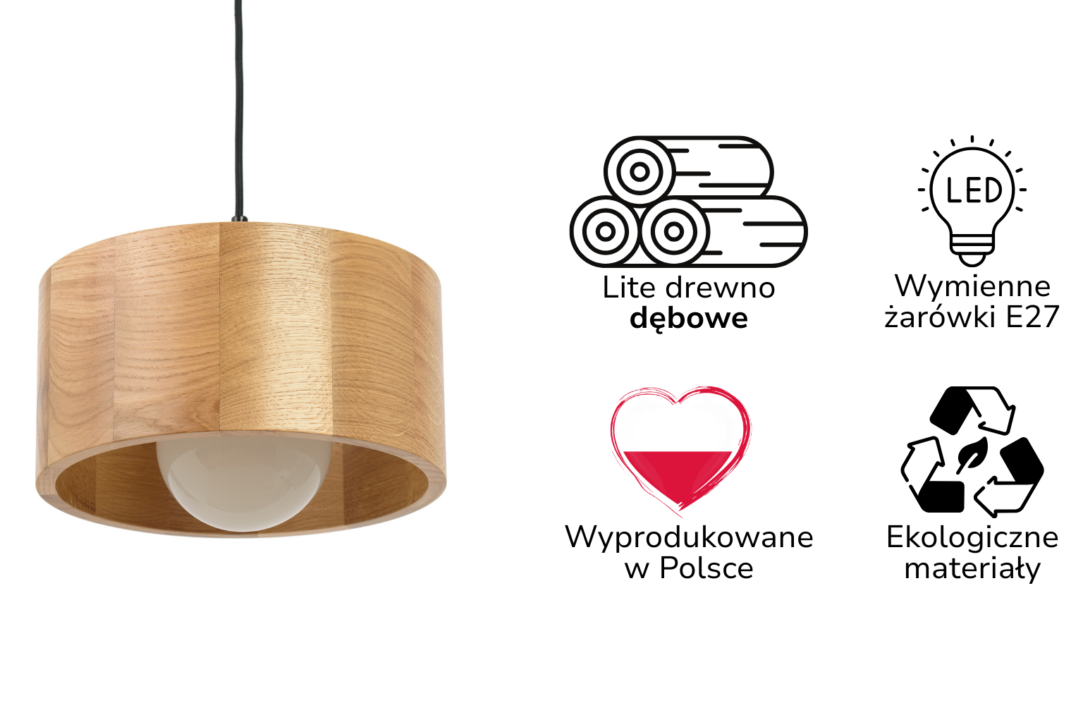 Wybierz lampę z litego drewna dębowego, z wymiennymi żarówkami E27, która będzie Ci służyć przez lata