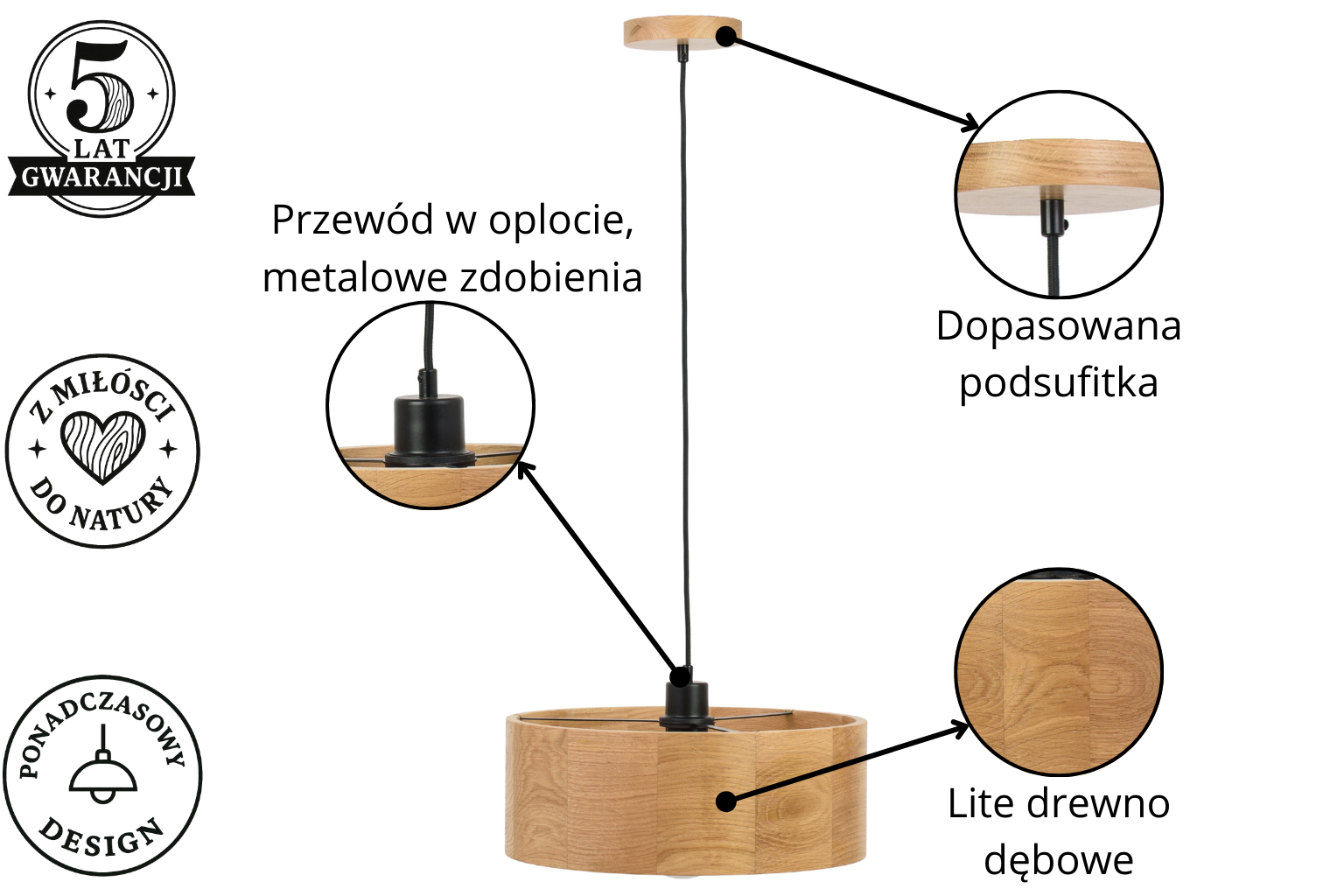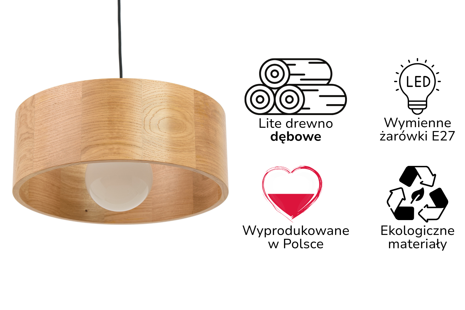 Wybierz lampę z litego drewna dębowego, z wymiennymi żarówkami E27, która będzie Ci służyć przez lata