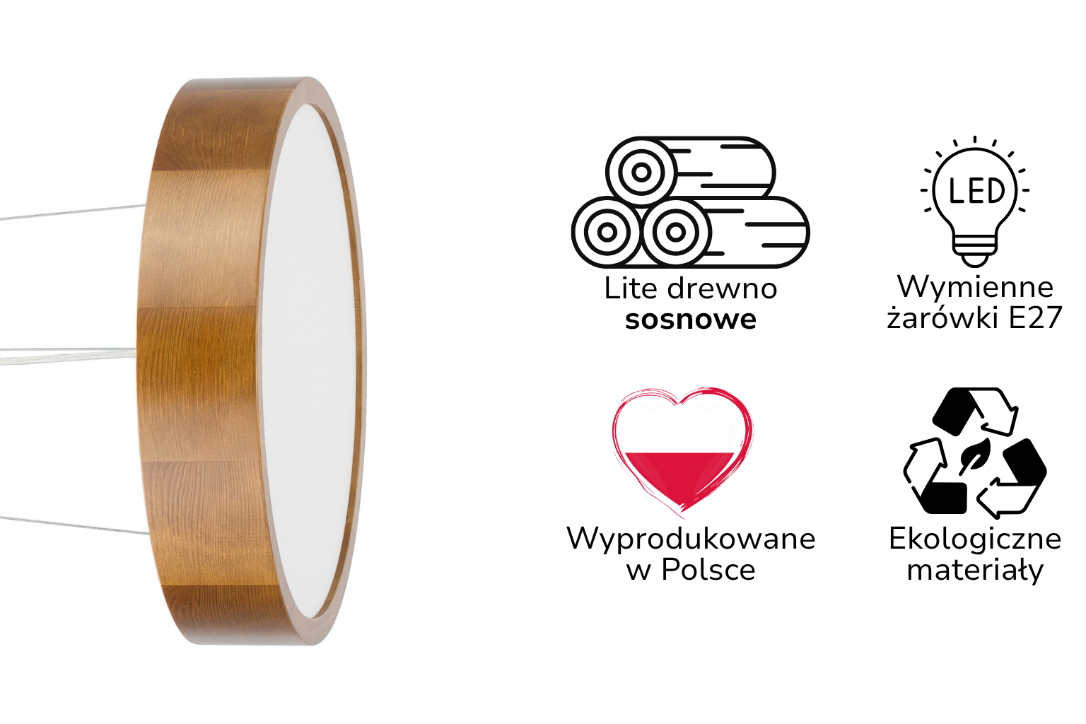 Wybierz lampę z litego drewna sosnowego, z wymiennymi żarówkami E27, która będzie Ci służyć przez lata