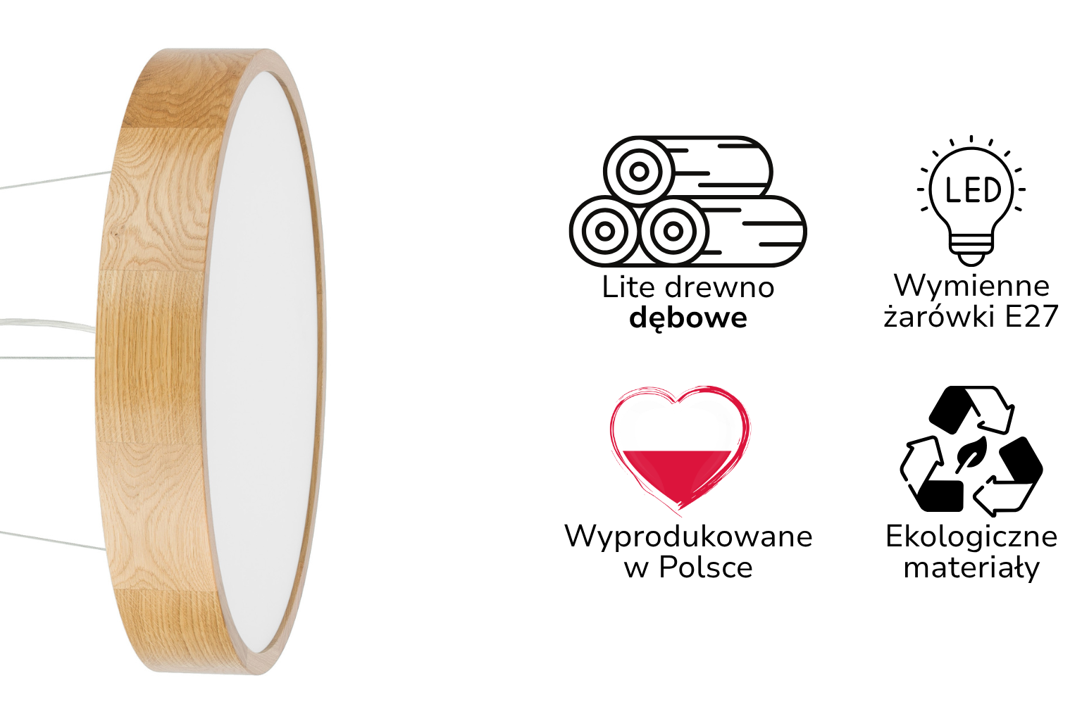 Lampa wisząca drewniana LEJA okrągła żyrandol zwis ∅475 DĄB