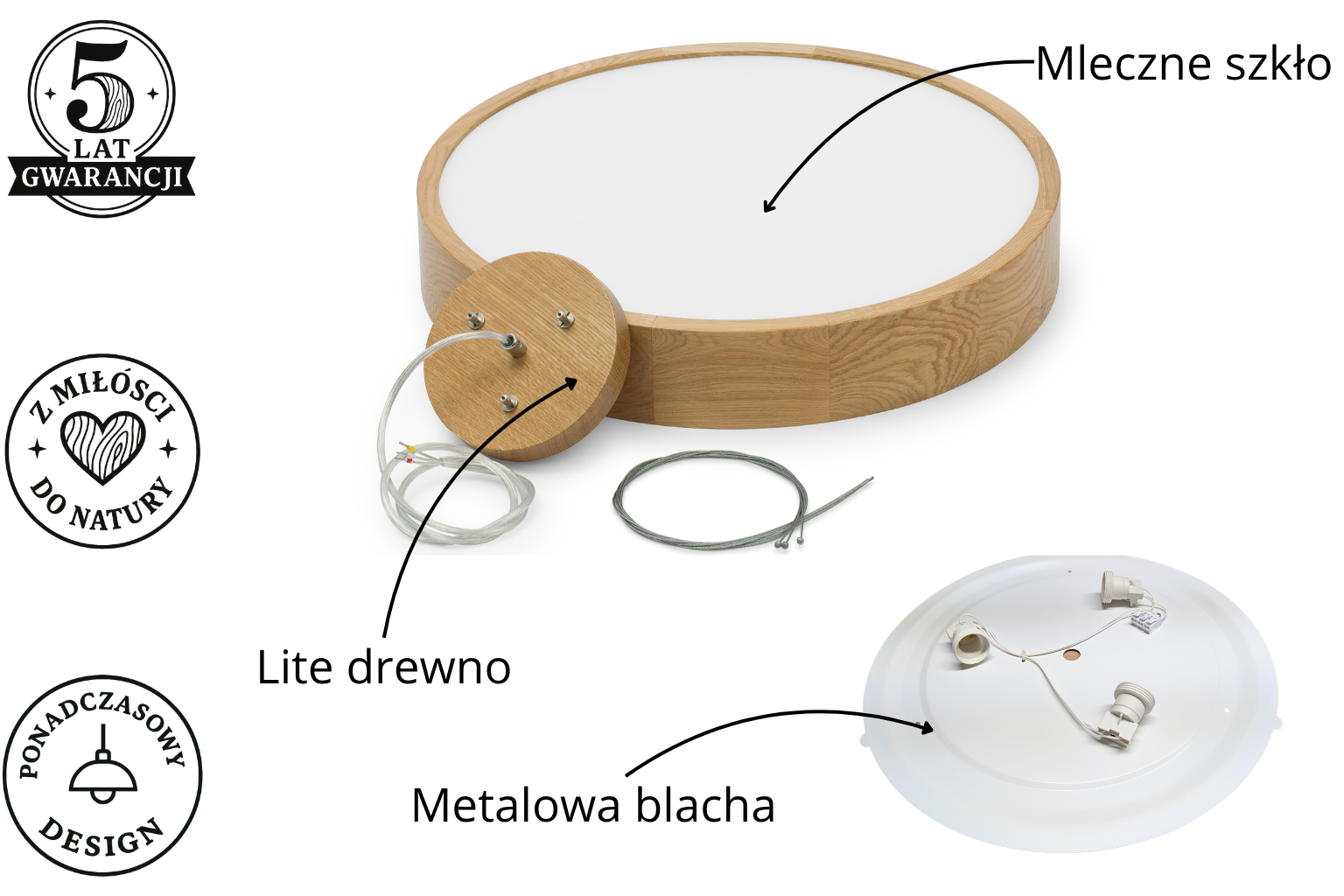 Napisz pierwszą opinię o „Lampa wisząca drewniana LEJA okrągła żyrandol zwis ∅475 DĄB”