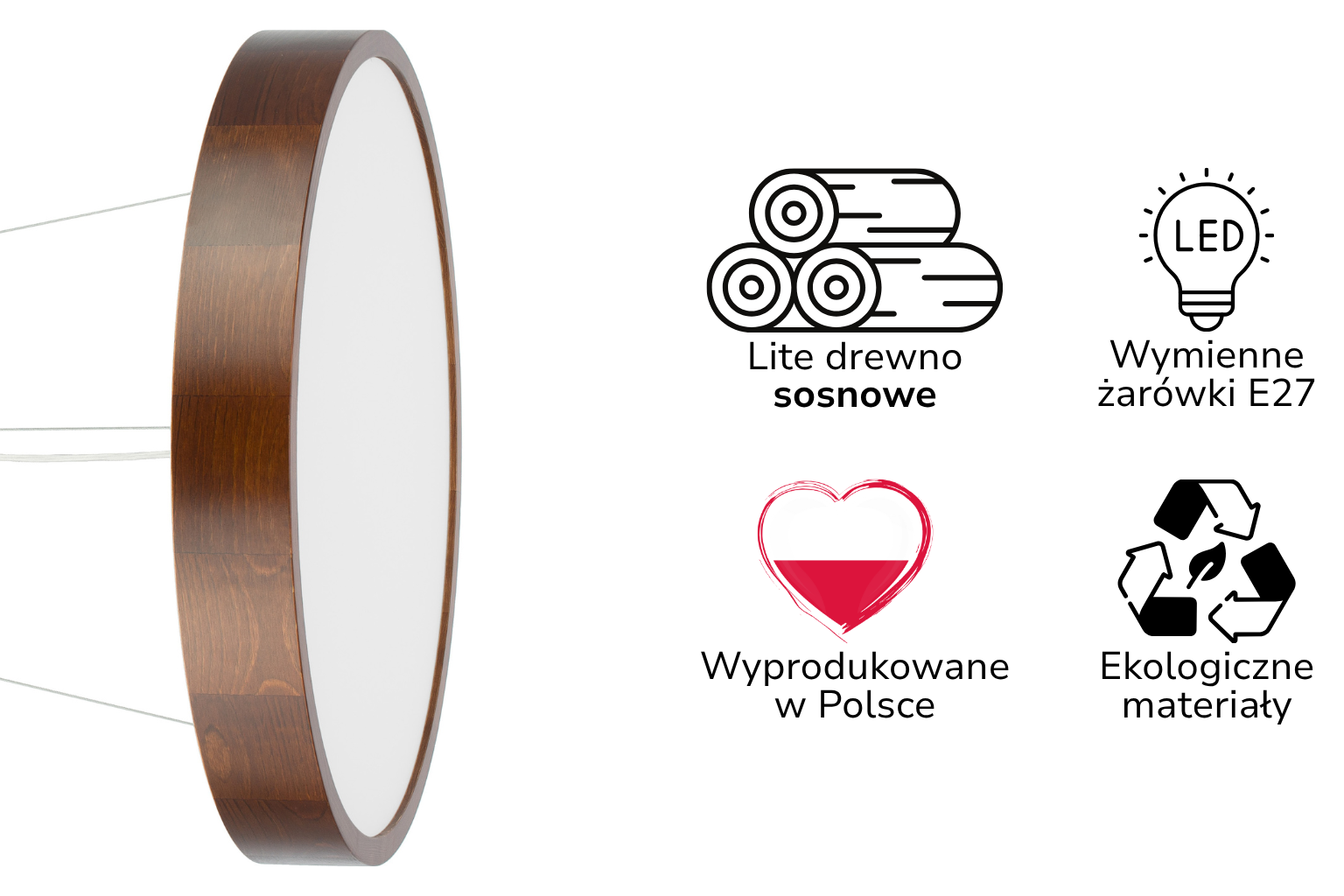 Lampa wisząca drewniana LEJA okrągła żyrandol zwis ∅575 ORZECH WŁOSKI