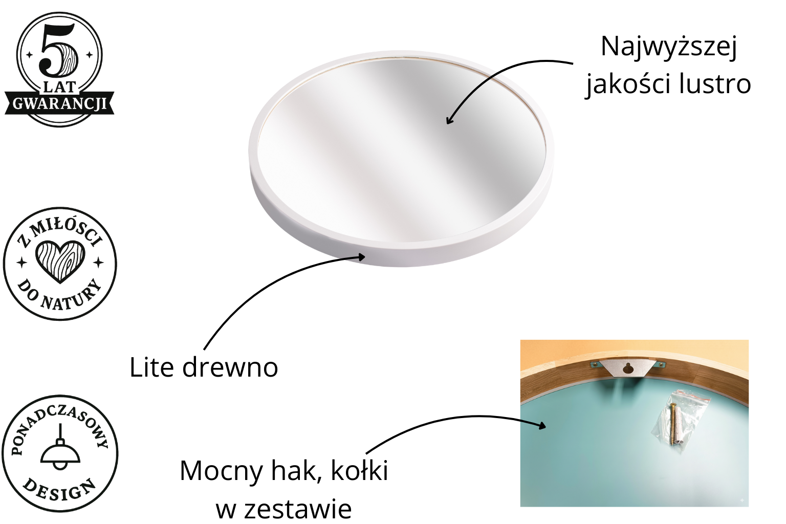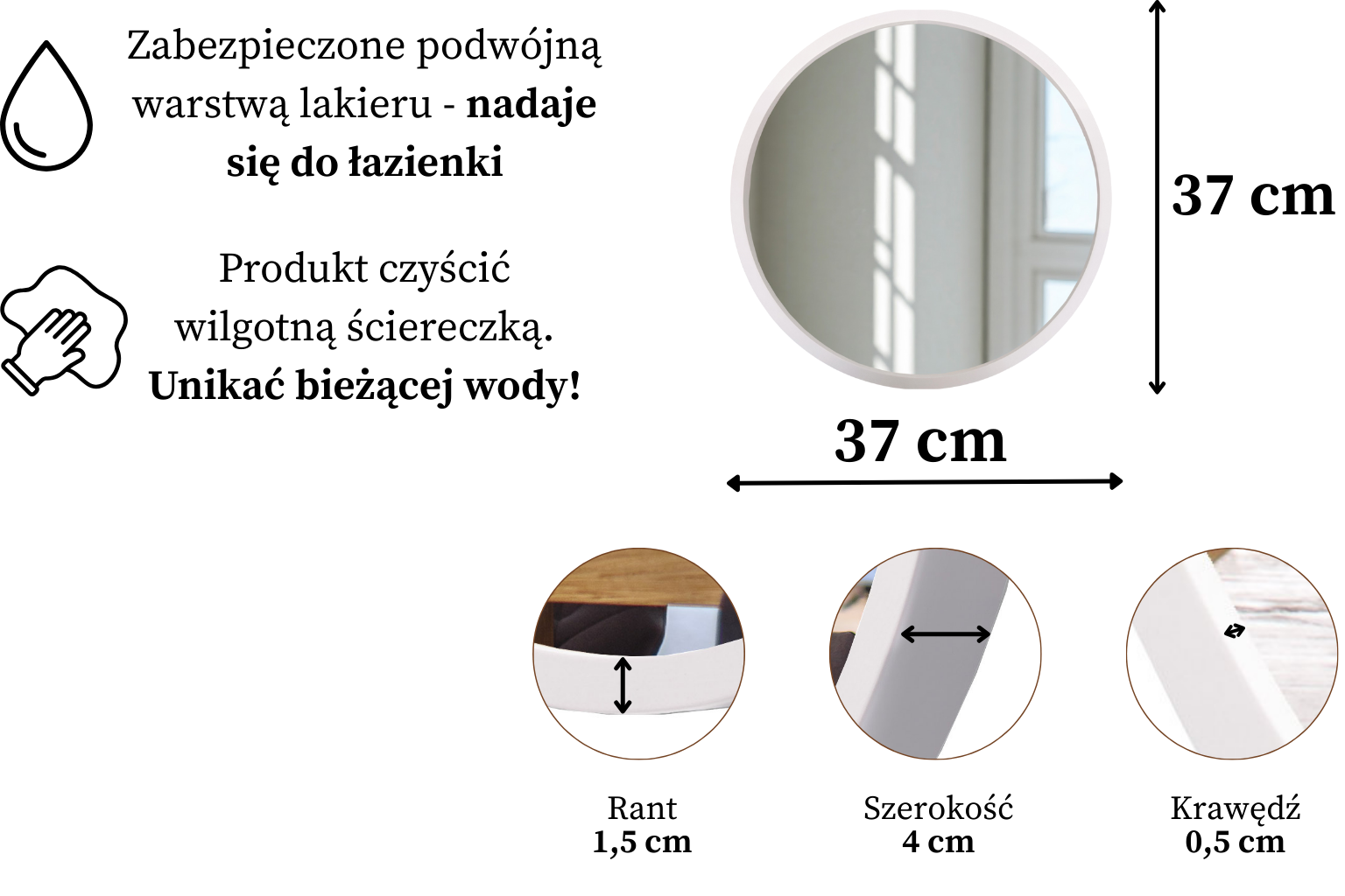 Napisz pierwszą opinię o „Lustro łazienkowe ścienne LEJA okrągłe ∅375 BIAŁE do przedpokoju salonu STYLOWE”