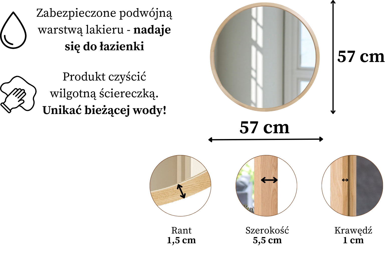 Napisz pierwszą opinię o „Lustro łazienkowe ścienne LEJA okrągłe ∅575 SOSNA do przedpokoju salonu STYLOWE”