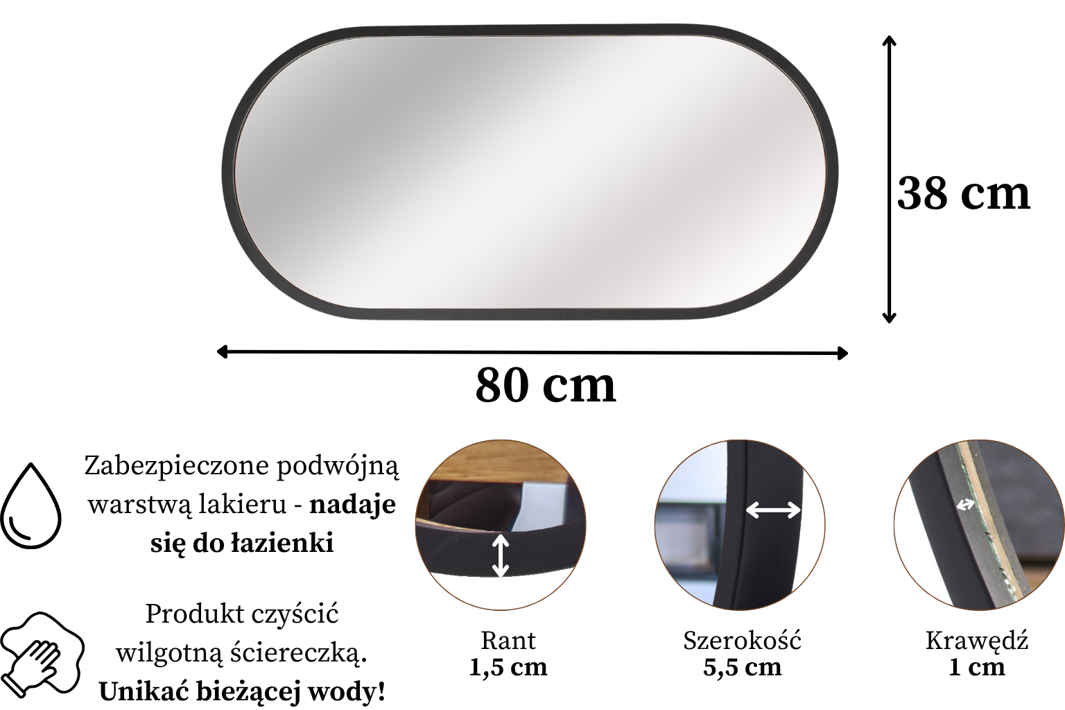 Napisz pierwszą opinię o „Lustro łazienkowe ścienne LEJA owalne drewniane CZARNY MAT 80×38 STYLOWE”