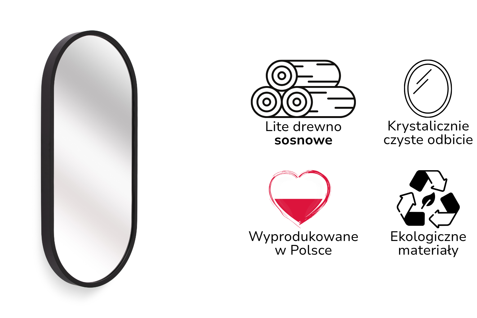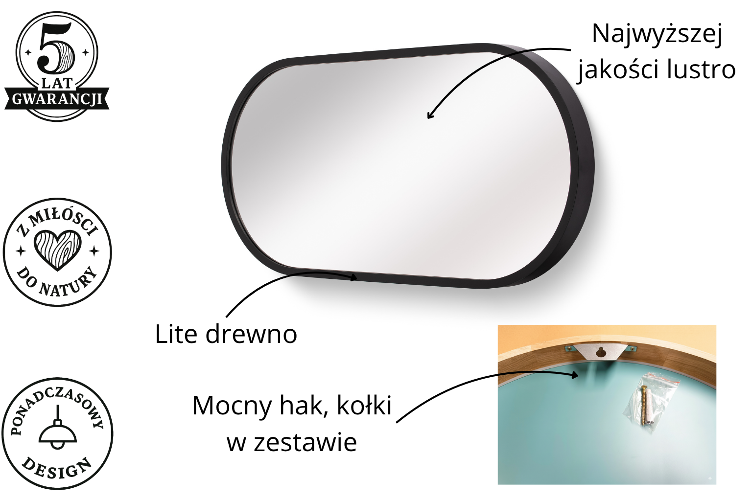 Lustro łazienkowe ścienne LEJA owalne drewniane CZARNY MAT 80×48 STYLOWE