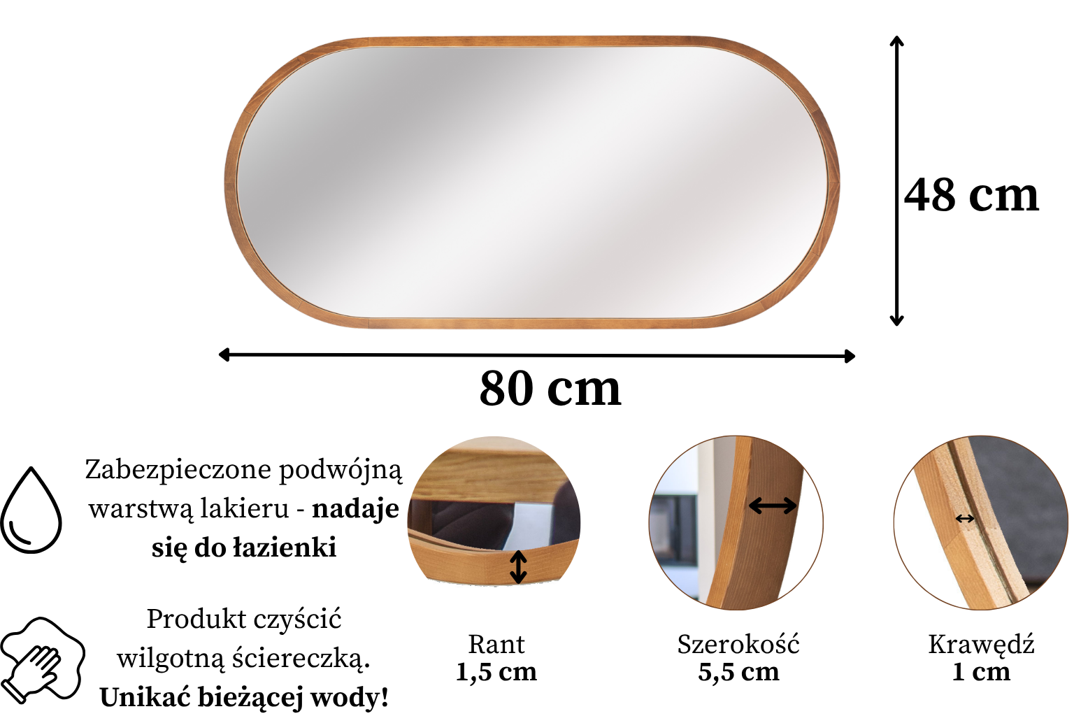 Lustro łazienkowe ścienne LEJA owalne drewniane RUSTIKAL 80×48 STYLOWE