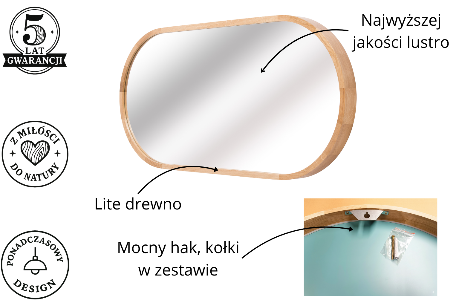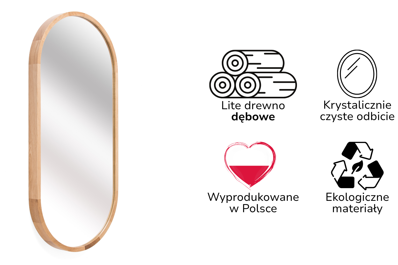 Lustro łazienkowe ścienne LEJA owalne w drewnianej ramie DĄB 80×38 STYLOWE
