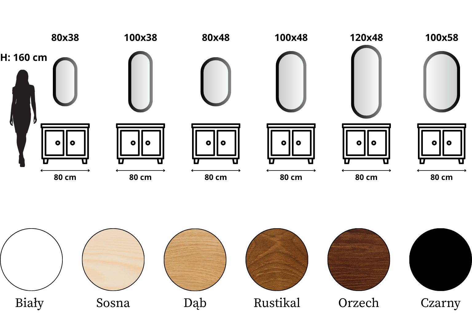 Napisz pierwszą opinię o „Lustro łazienkowe ścienne LEJA owalne w drewnianej ramie DĄB 80×38 STYLOWE”