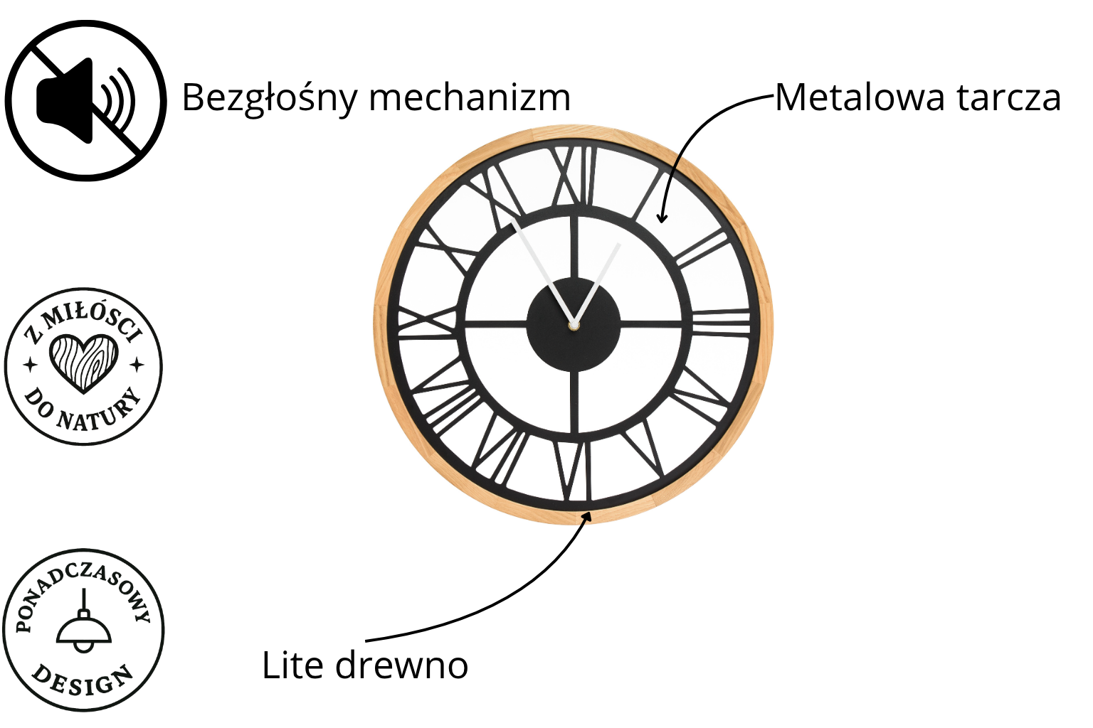 Napisz pierwszą opinię o „Zegar ścienny LEJA 47cm drewniany DĄB premium”
